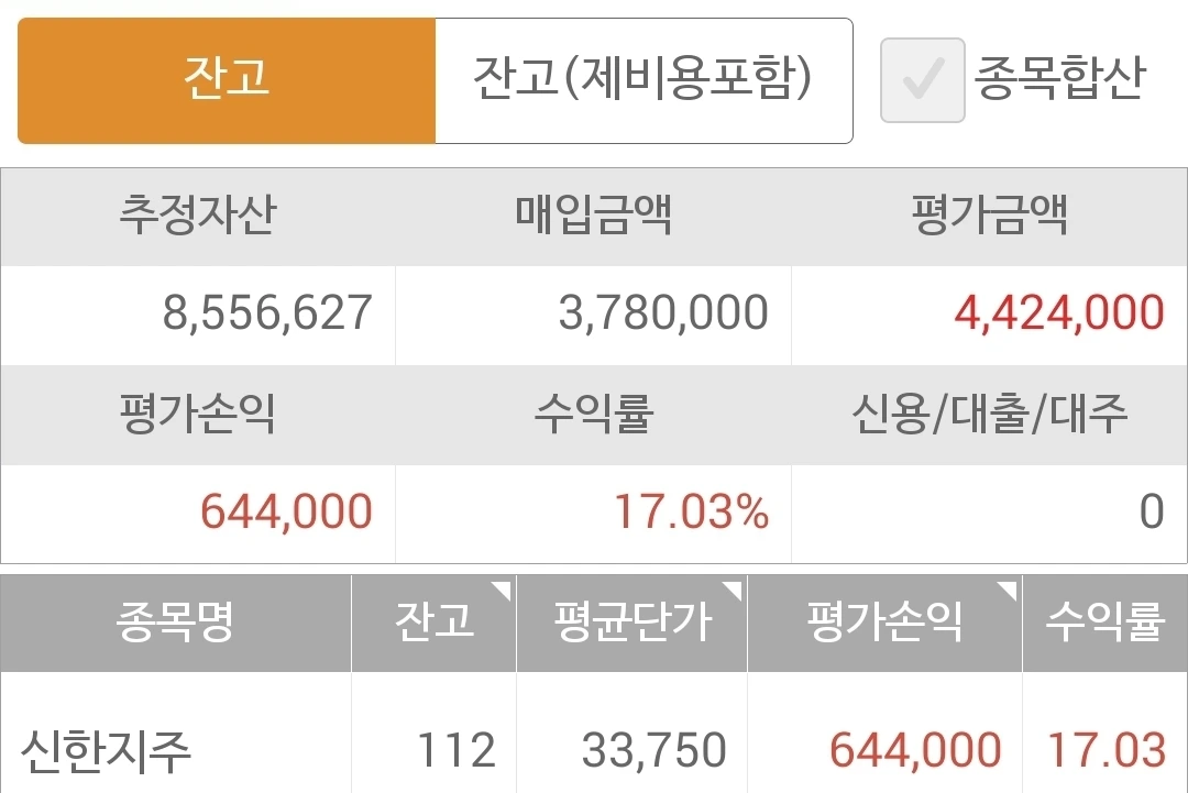 사진 1. 현물 주식. 855만 원. 500만 원 투자에 이 정도면 오케이~ 푸핫.