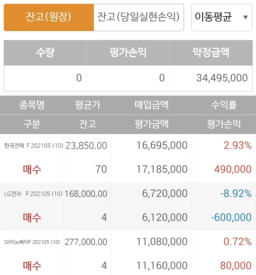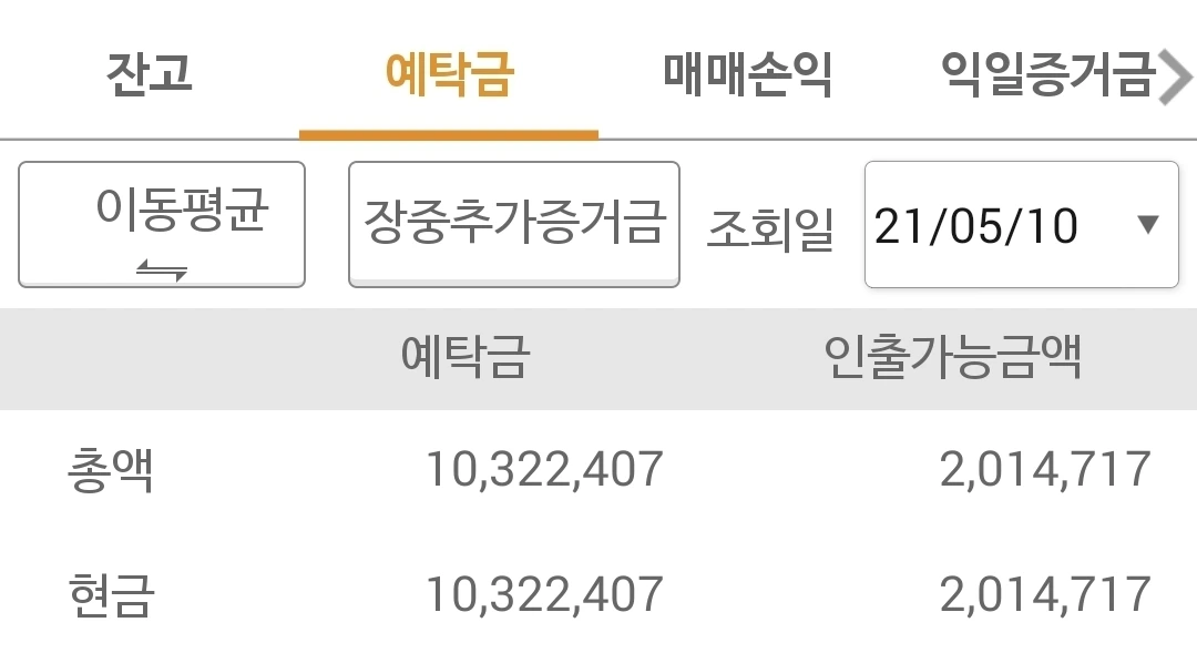 사진 3. 선물 주식 예탁금. 천만 원대로 깡총 올라섰다. 그러나 원칙을 어긴 것이기에 사실 불안 불안하다.