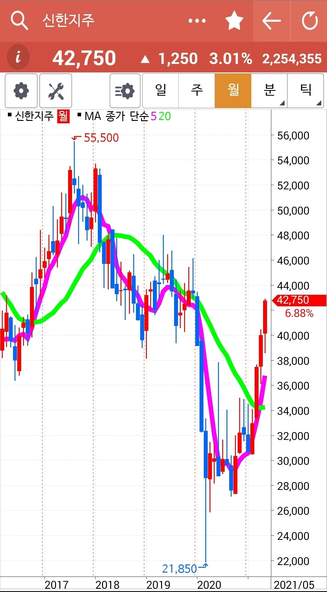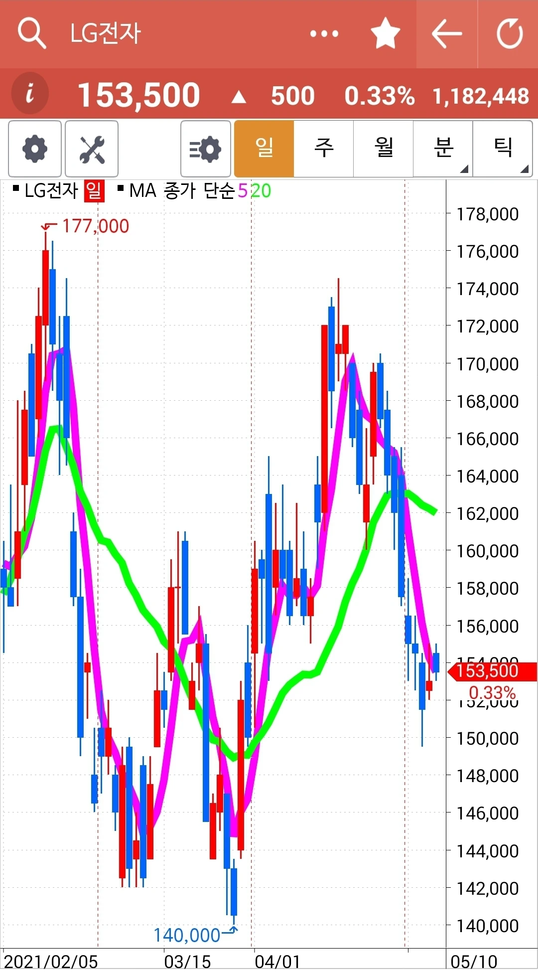 나의 원칙에서 한참 벗어나 있다. 옛날 못된 습성이 다시 나오고 있다. 에잇 이렇게 된 것. 주봉의 5 주선이 아직 20 주선 위에 있는 걸. 월봉은 5개월 선이 한참 위에 있는 걸. 하면서 제때 매도 못한 걸 합리화하는 요 못된 수법. 그러나 요즘은 노트북에 올 시간이 충분치 않으므로 모두 용서해주기로 한다. 합리화도 용서!
