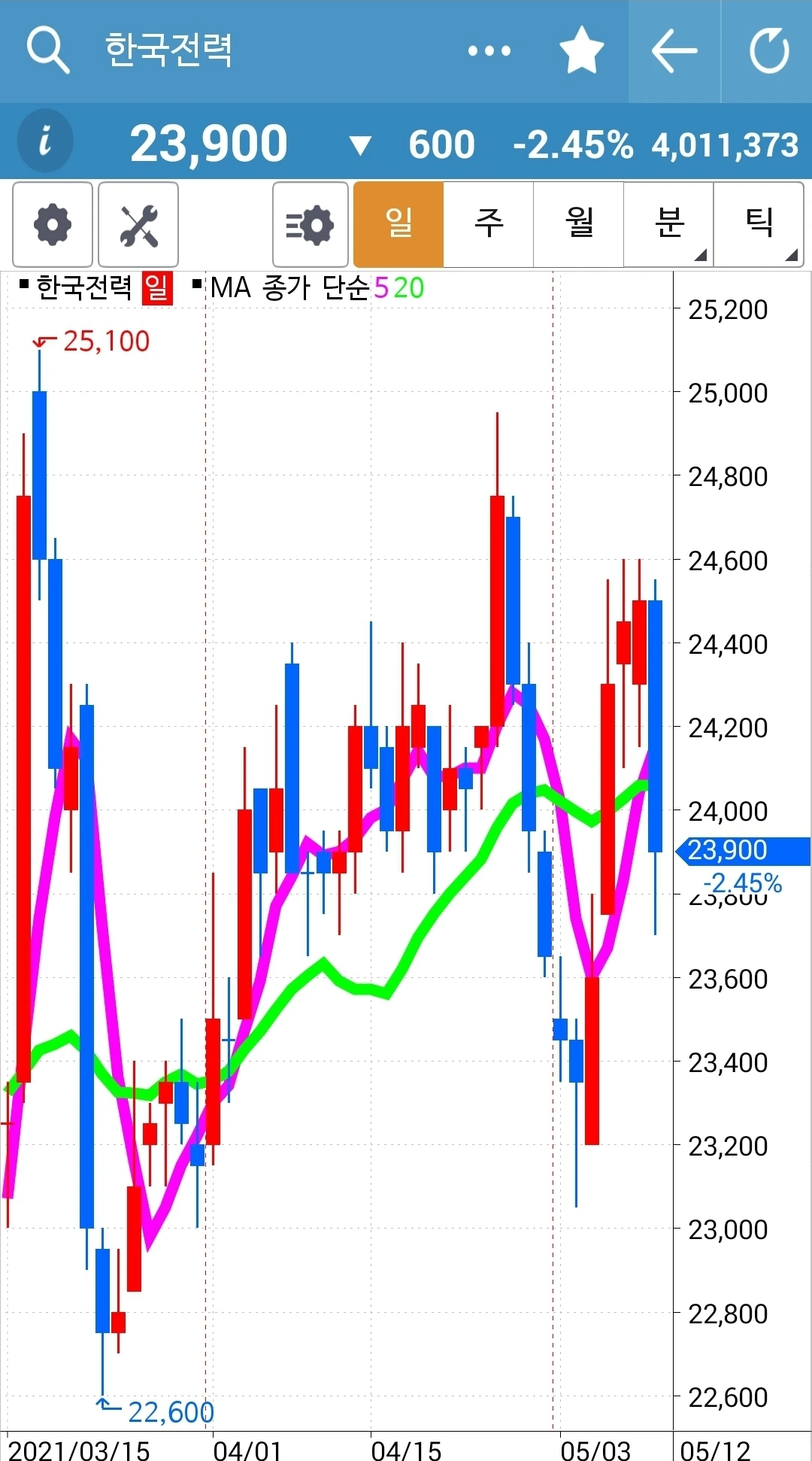 비록 5일 선도 아래로 꺾였고 20일 선도 방향을 아래로 잡는 듯하나 아직 5일선이 위에 있으니 내가 할 일은 없다.