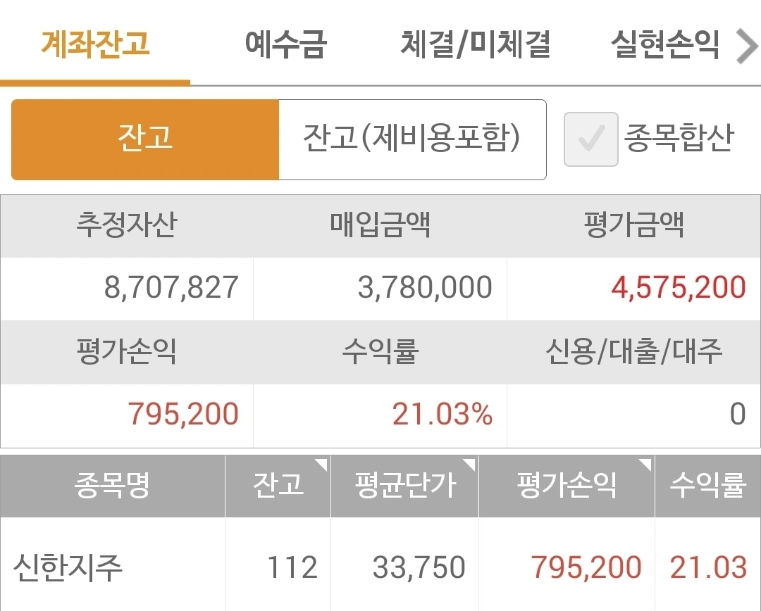 사진 1. 현물 주식. 900만 원을 코앞에 두고 고꾸라진다.