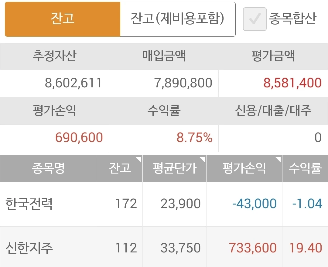 사진 1. 현물 주식. 길게 가져가려고 너무 예민하게 반응하지 않기로 한 종목들.