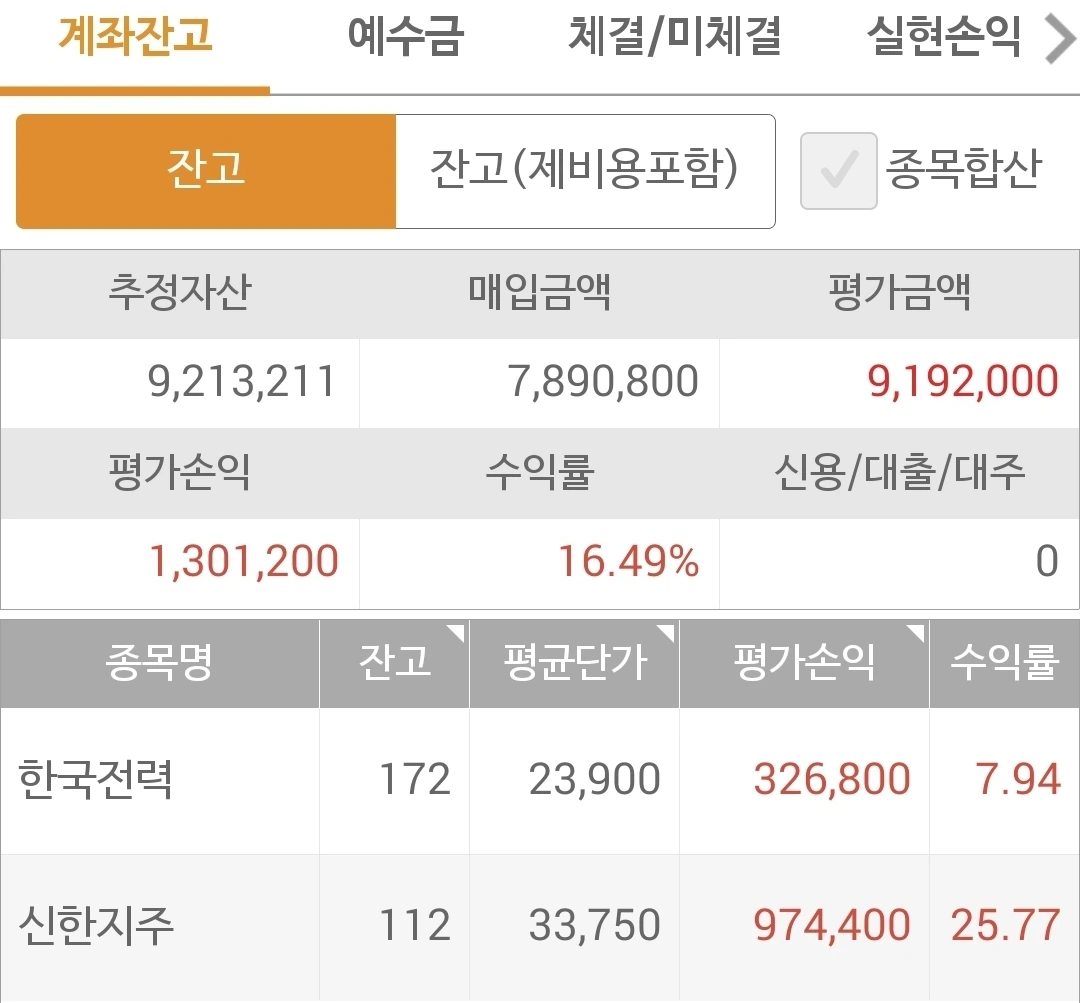 사진 1. 현물 주식. 500만 원 투자해서 921만 원이면 오케이. 참 잘했어요~ 하하