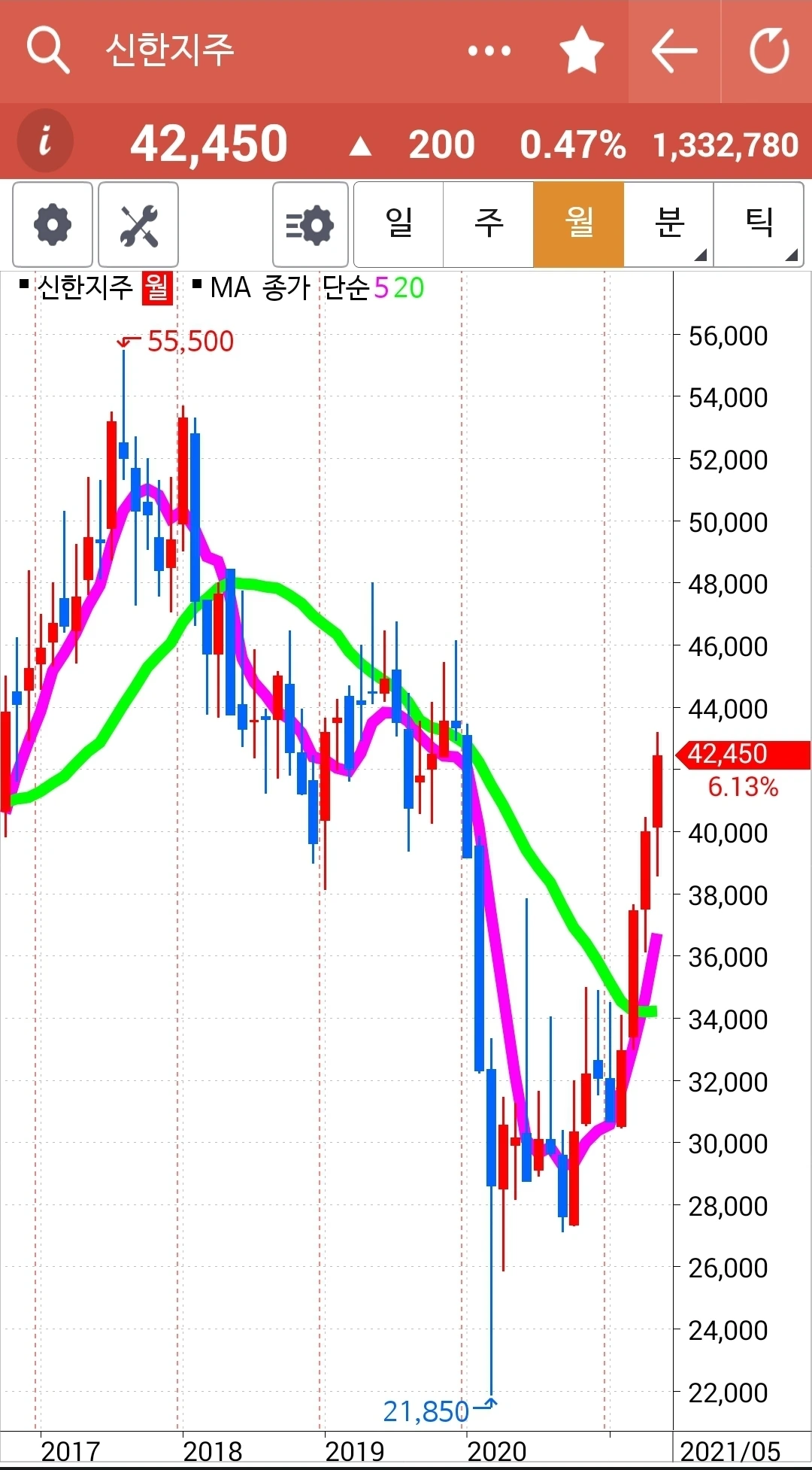 일봉 주봉 월봉 모두 5가 20 위에 있으며 예쁘게 상승하고 있다. 걱정 무! 파이팅!!!