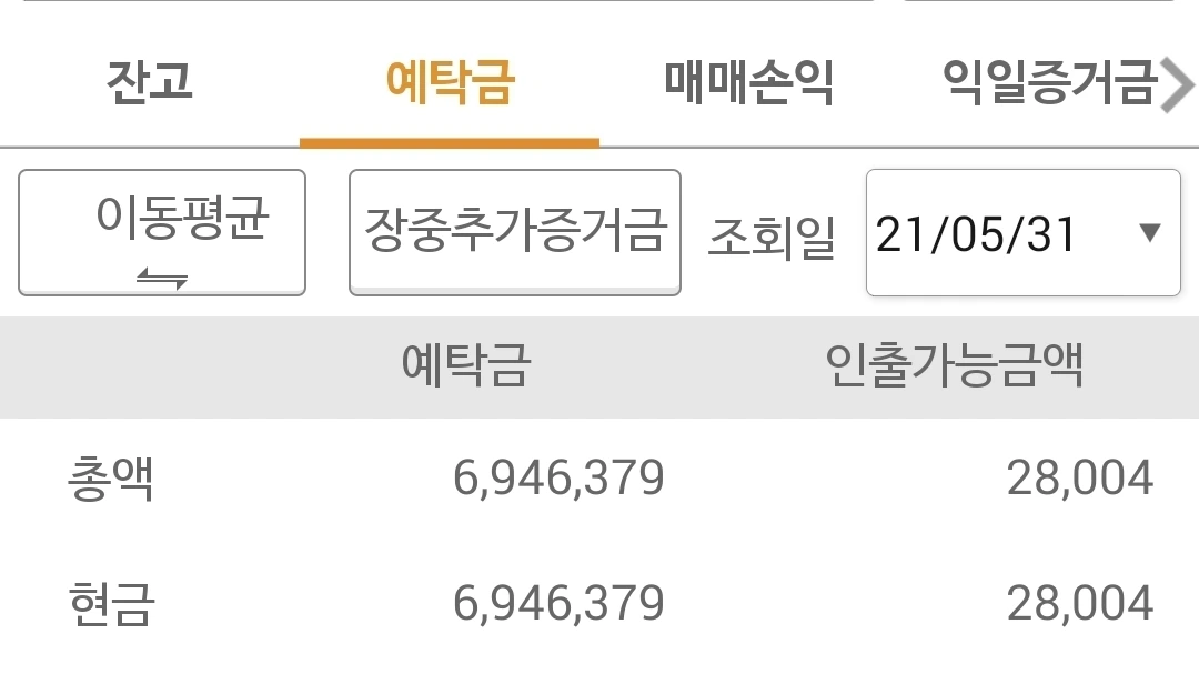 사진 3. 선물 주식 예탁금. 700만 원대에서 다시 밀려났다. 그래도 파이팅!!!
