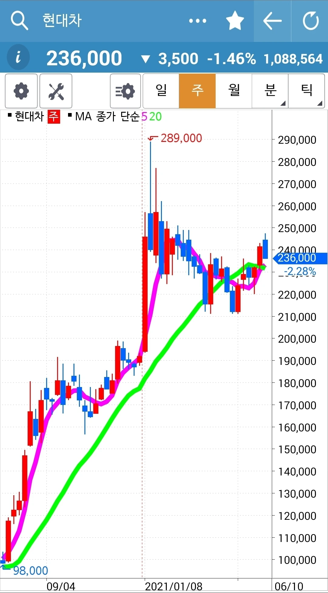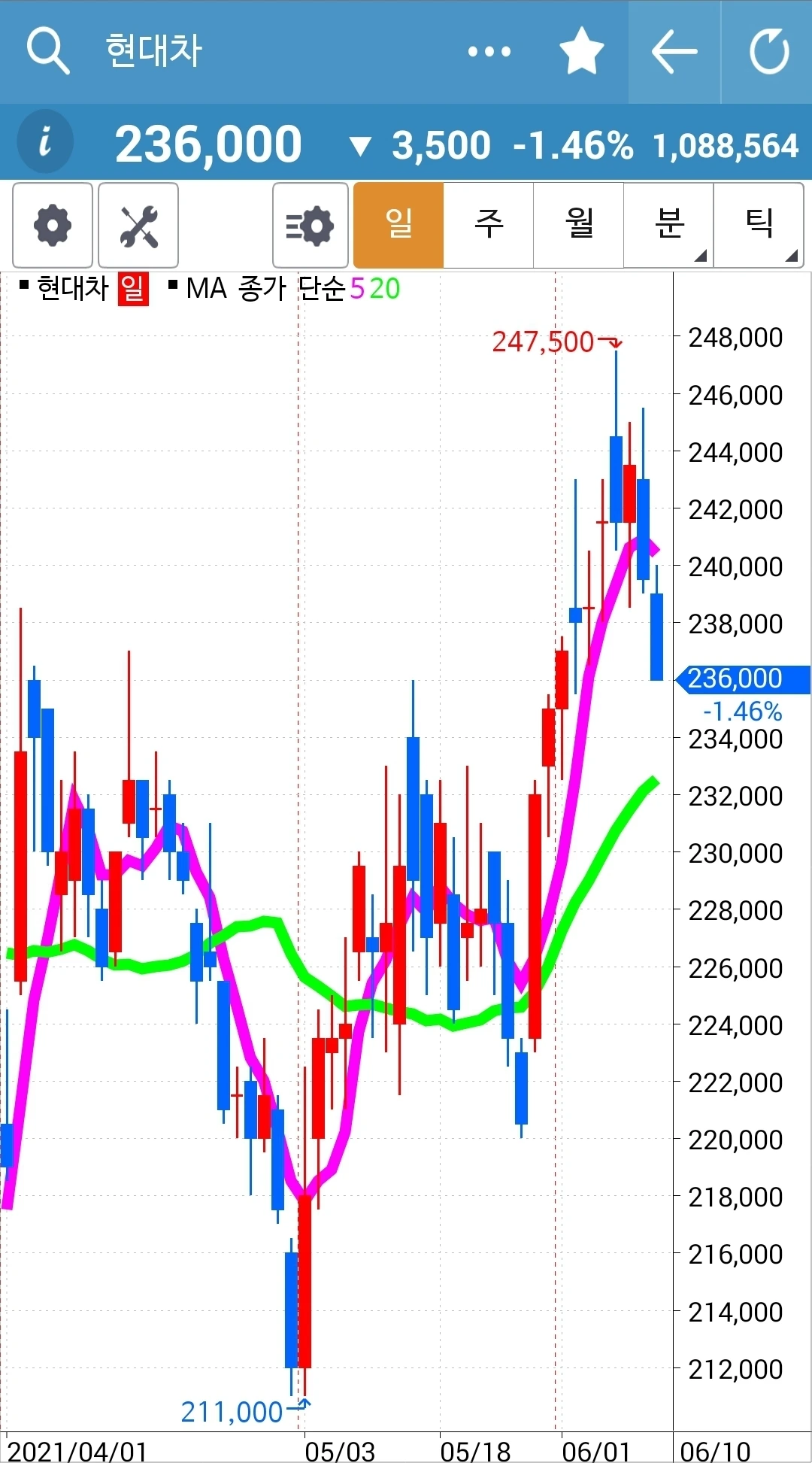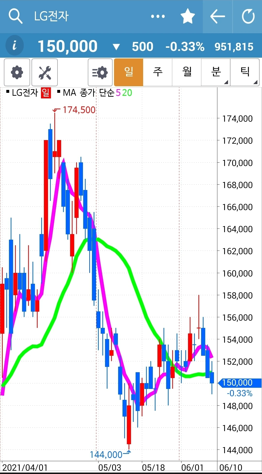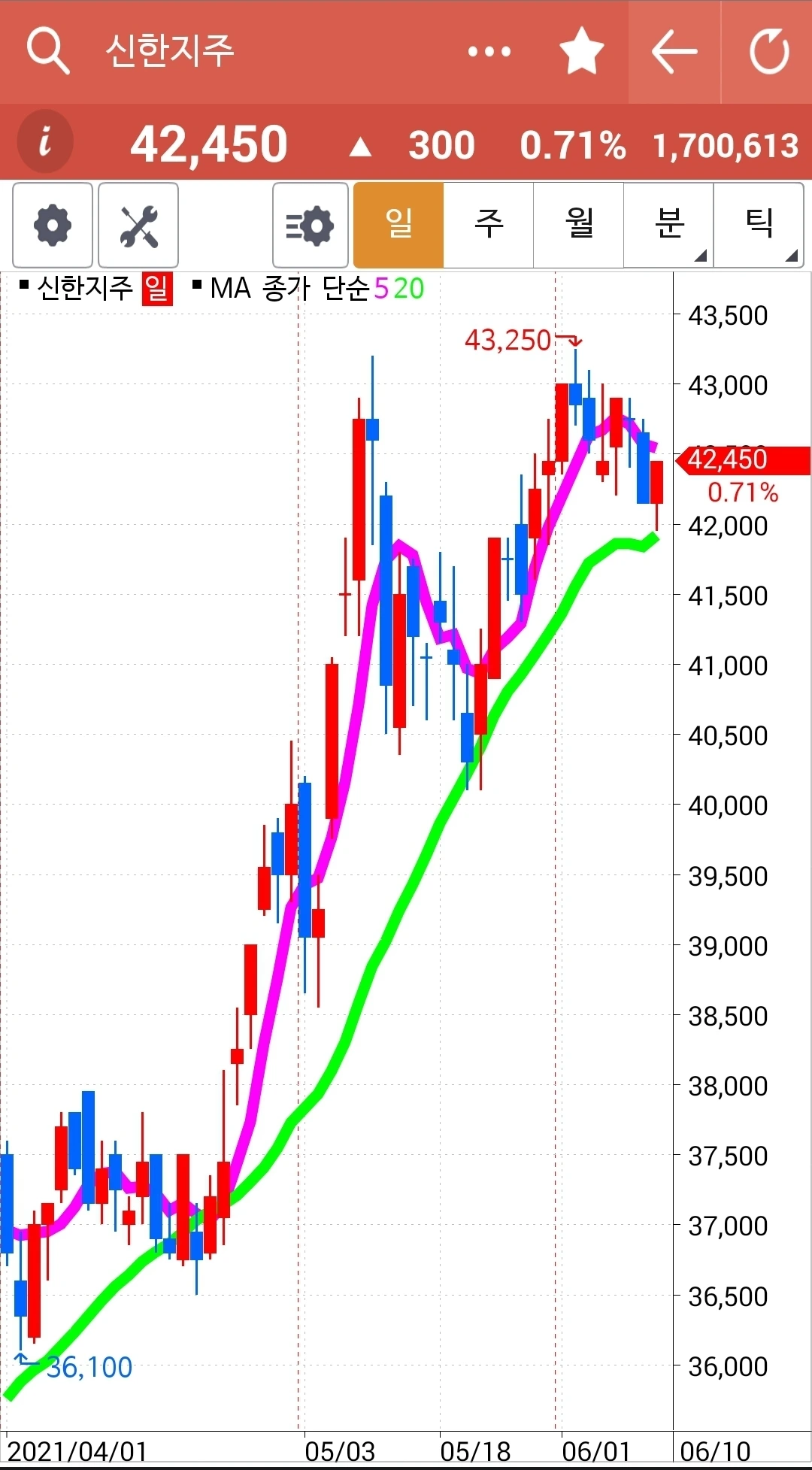 선물 만기일이다. 그래서 더 가지고 있고 싶어도 나의 선물주식은 모두 정리가 되었다. 새롭게 시작해야 한다. 급할 거 없다. 바쁘면 바쁜 대로 그냥 현물 주식만 가지고 있어도 된다. 내일은 바쁜 일이 계획되어 있다. 그러므로 찬찬히 선물주식을 매수할 기회는 없을 수도 있다. 그러면 또 어떠랴. 난 나의 친구 어머니처럼 94세까지도 주식장 앞에서는 눈이 반짝반짝 투자를 할 것이기 때문에 장기전으로 가야 한다. 즉 오래오래 주식시장에서 살아있어야 한다는 말이다. '난 아무것도 몰라요 5일선이 20일선 아래로 가면 매도할 뿐야요~' 그거 하나면 오래오래 생존할 수 있다. 살아만 있으면 언제든 대박의 기회는 온다. 그러므로 바쁘면 바쁜 대로 세월 가는 대로 내버려 두련다. 하고 싶을 때 이거다 싶을 때 들어가면 된다. 급할 거 없다. 파이팅!!!