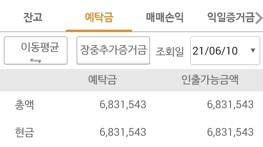 사진 3. 선물 주식 예탁금. 결국 600만 원대로 내려앉았다. 기운 내자. 파이팅!!!