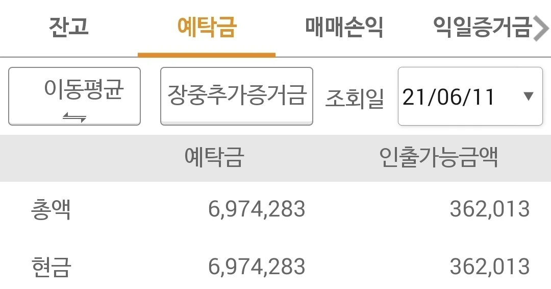 사진 3. 선물주식 예탁금. 700만 원대 근처까지 갔다. 파이팅! 조금만 더!