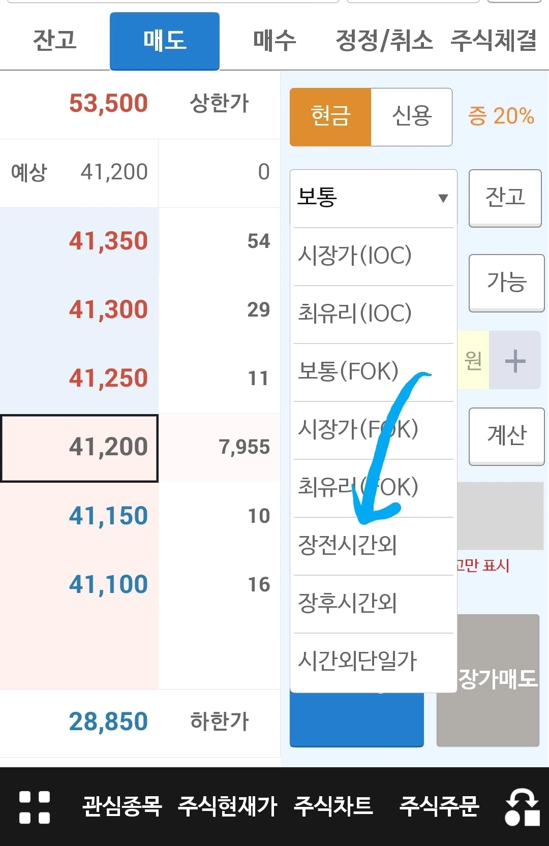 일찍 서둘러야만 했다. 이천 호국원으로 달려가기 위해선. 9시에 출발하기로 했기에 그 이후에 내가 이걸 만지고 있을 수는 없다. 이전에 주문할 수 있는 게 무어 있을까? 동시호가에 주문하는 것. 그게 무얼까? 전일 종가로 팔 수 있는 게 있었다. 주문 창에서 대개 보통으로 되어있는데 그 옆을 누르니 이렇게 종류대로 촤르륵 나타난다. 8시 30분부터 40분까지 전일 종가로 매매할 수 있는 게 '장전 시간 외' 매매란다. 오호. 어제 5일선이 20일선 아래로 내려갔으므로 팔아야 했는데 못 팔았어도 이렇게 다시 한번 기회가 있구나. 당장 주문을 넣고 체결된다. 어제 종가 41,200원에. 난 나의 임무를 완수했다. 그러고 나서 많이 올랐다. 그러나 내게 그 이후 오르고 안 오르고는 중요치 않다. 스스로 정한 원칙을 지키느냐가 내게는 더욱 중요하다. 그러므로 난 박수를 받아야 한다. 짝짝짝 참 잘했어요. 기계적으로 5일선이 20일선 아래로 내려가니 탈락시켰군요. 오르고 말고는 내 소관이 아니지요. 그렇다. 난 기계. 감정도 생각도 없는 기계. 이대로 다시 쭉쭉 올라간다면? 무얼 어떡해? 지켜보다 5일선이 다시 20일선 위로 올라갈 때 매수하면 되지! 파이팅!