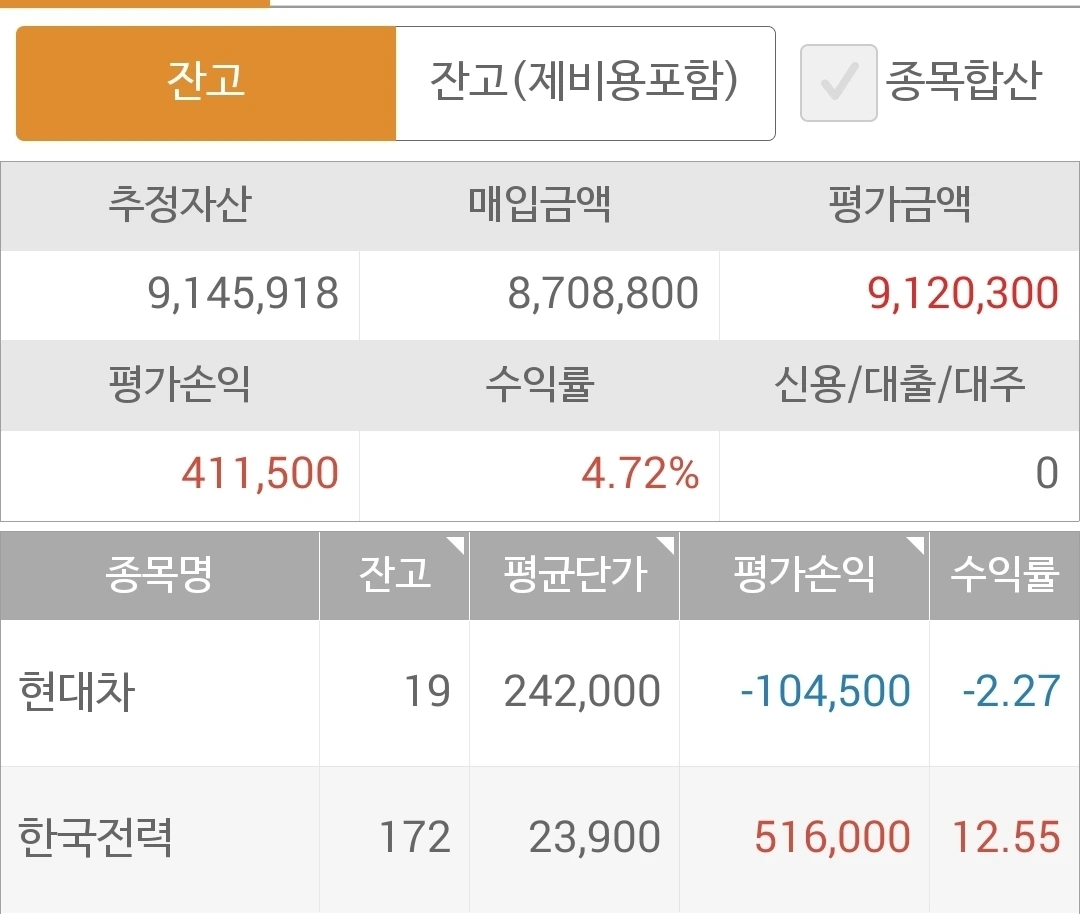 사진 2. 선물 주식. 다른 건 다 괜찮은데 현대차가 마이너스 기록 중이다.