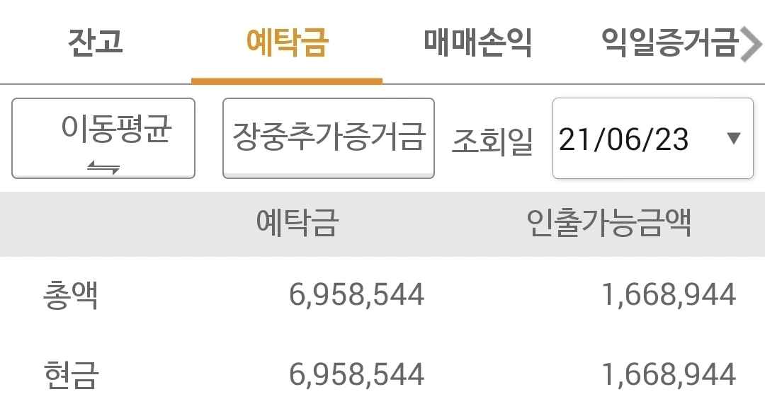 사진 3. 선물 주식 예탁금. 다시 600만 원대로 떨어졌다. 과연 선물주식에서 성공할 수 있을까?