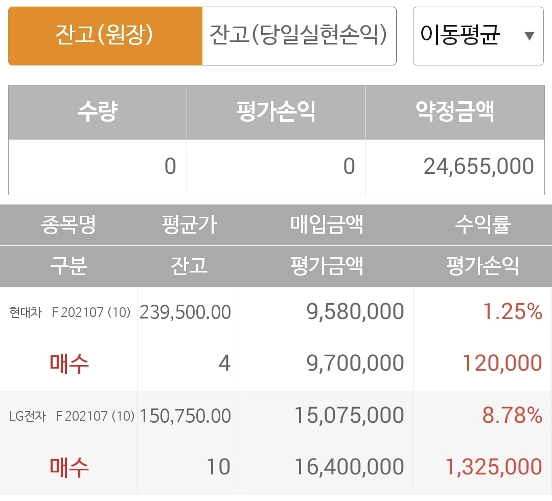 사진 2. 선물 주식. 한국전력 빠진 곳에 사놓을 종목을 고를 새가 없었다. 없으면 없는 대로 구름에 달 가듯이 두둥실 두리둥실 푸하하하