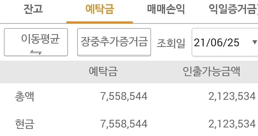 사진 3. 선물 주식 예탁금. 800만 원대를 코앞에 두고 있다. 분발하자. 파이팅!!!