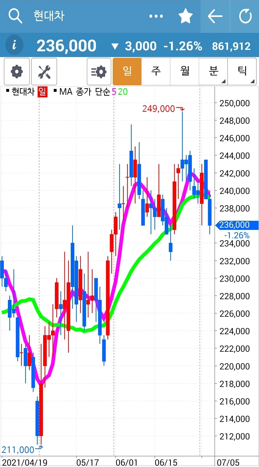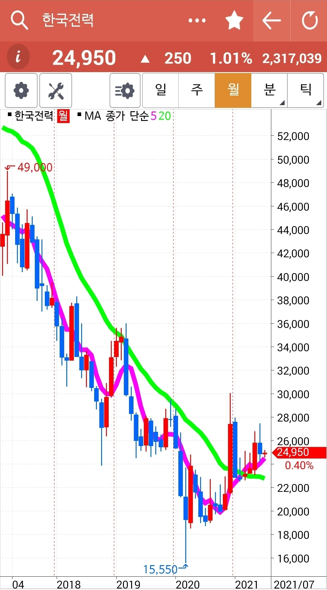 눈 딱 감고 지켜본다 와이? 현물 주식이므로 그리고 월봉을 보고 들어왔으므로 월봉이 깨지지 않는 한 매수 유지다라고 스스로 정했기 대문이다. 그래 이런 방식 저런 방식 해보고 싶은 대로 다 해보 잣. 와이? 나의 돈이니까. 푸하하하