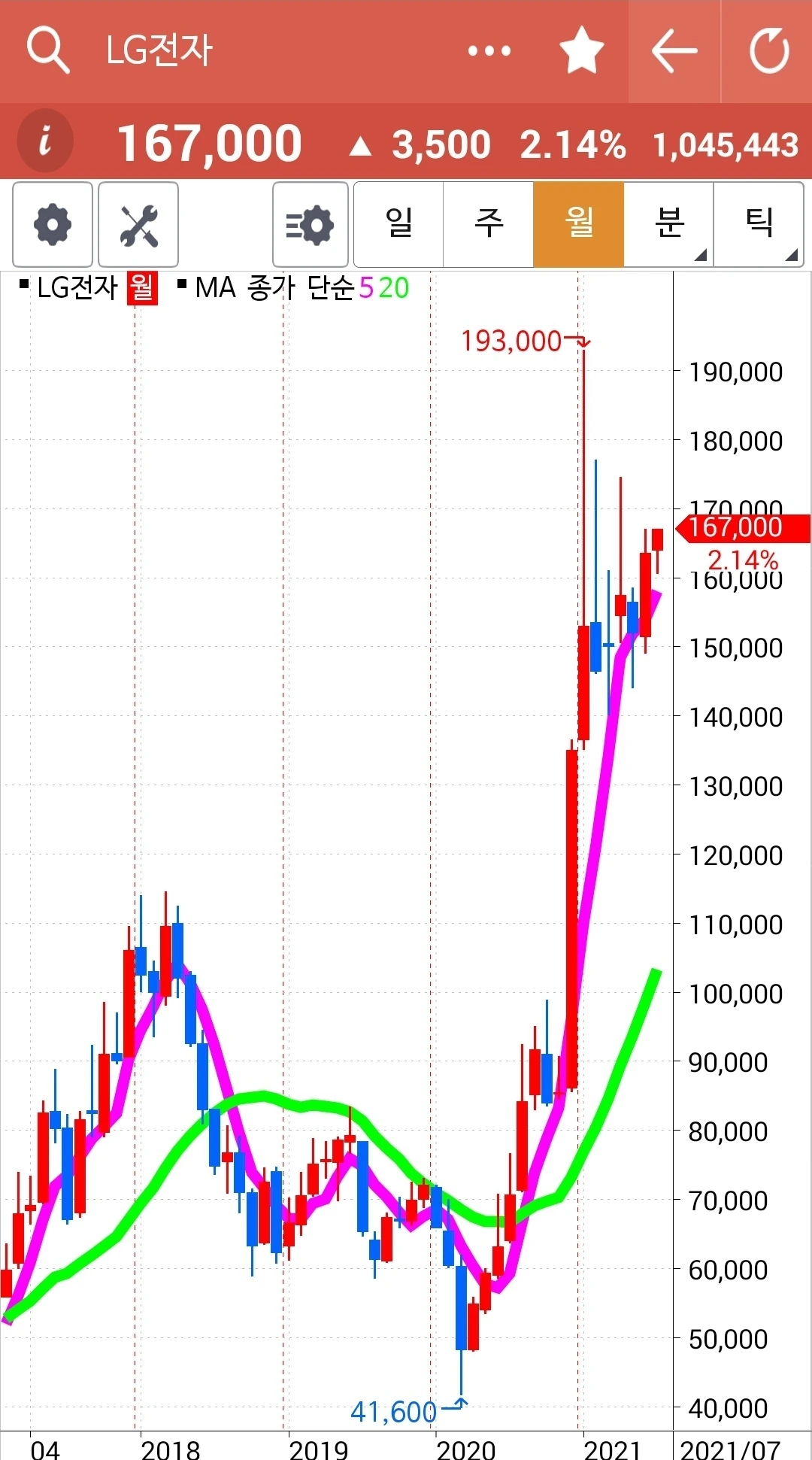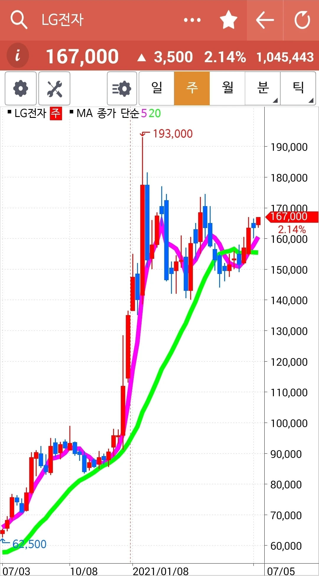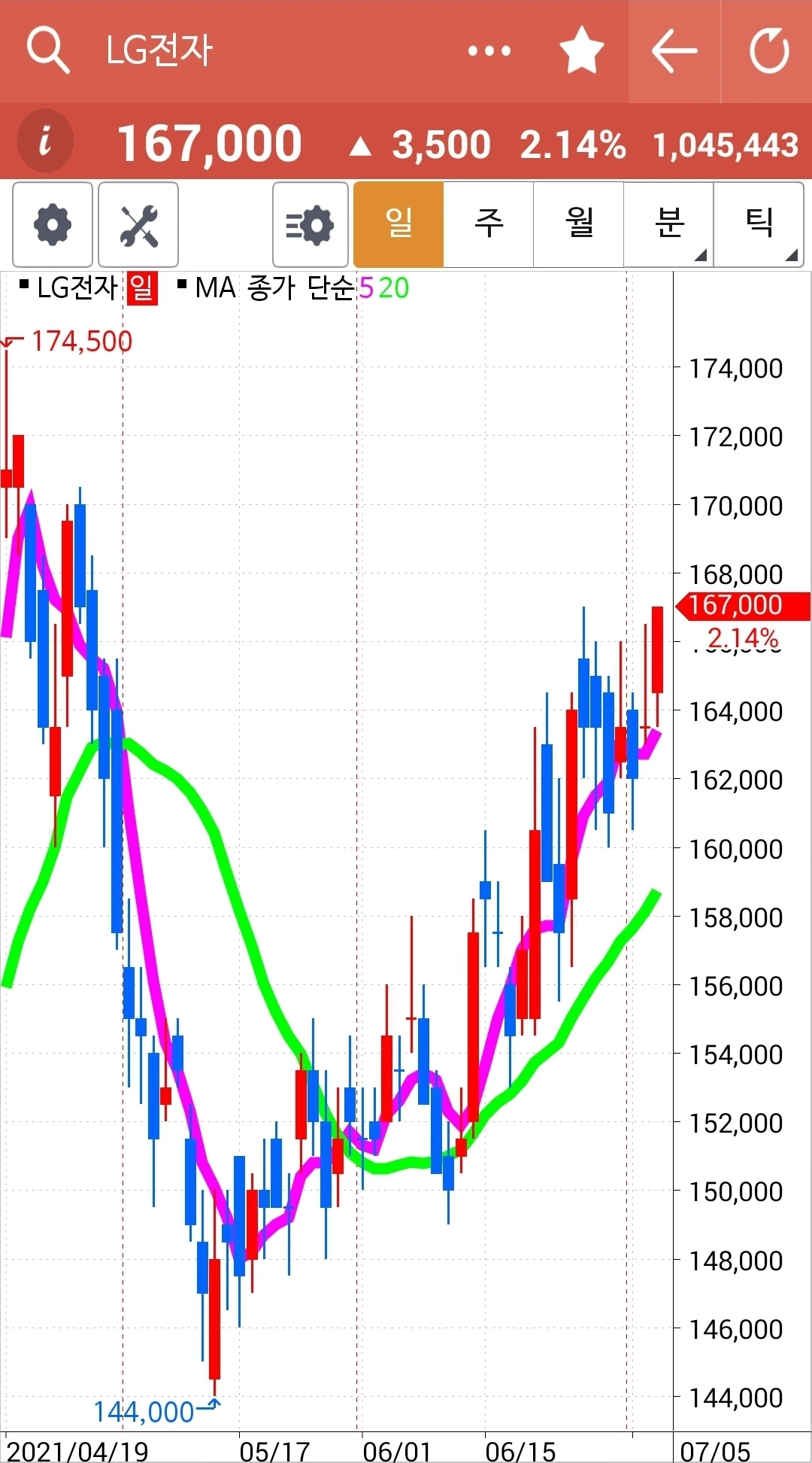 역시 나의 사랑 LG전자. 하하 신나게 올라가고 있다. 정말 멋지다. 파이팅!!!