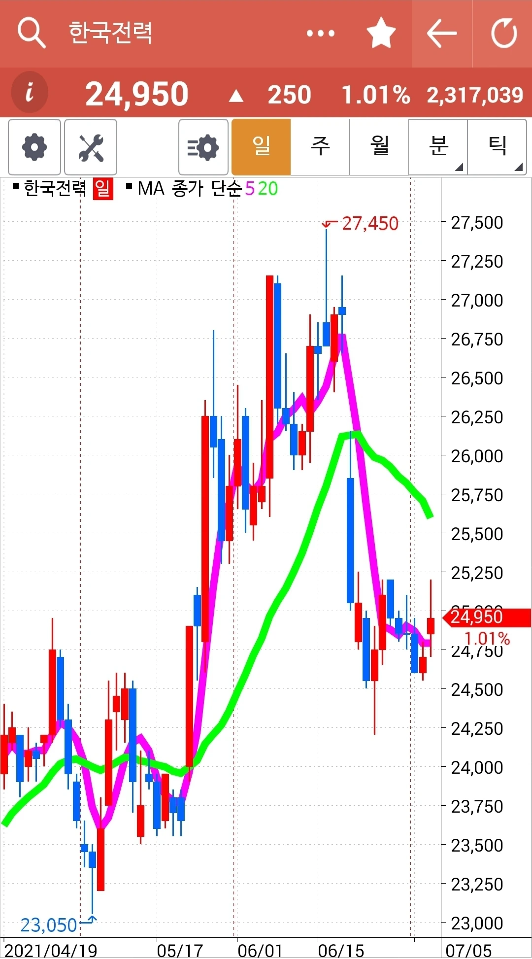 아슬아슬 위태위태다 내일 잘 지켜보자. 아직은 5일선이 위에 있다. 파이팅!