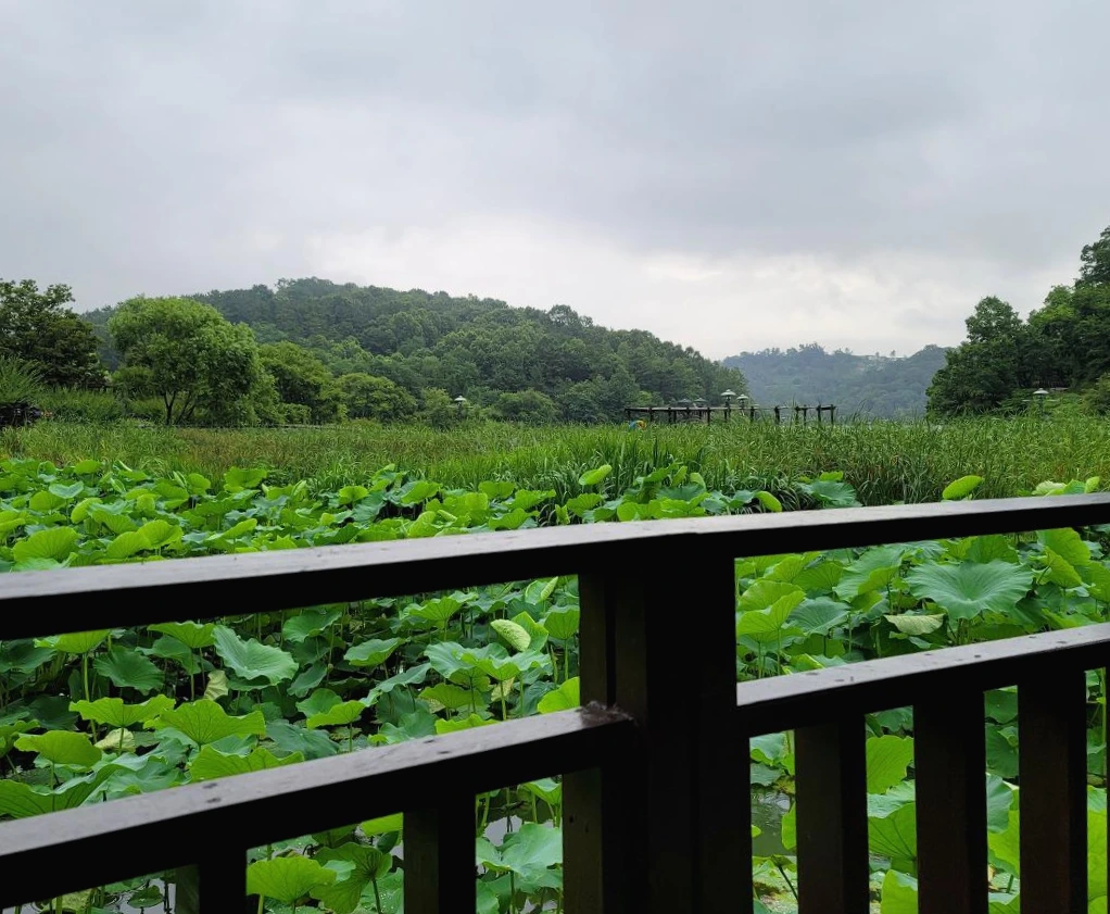 캬~ 어떻게 이럴 수가. 그러게 말이야 정말 절묘한 타이밍이야. 조금만 더 빨랐어도 조금만 더 늦었어도 절대 이런 순간은 오지 않지. 하하 남편과 나는 쏴아 쏴아 우르릉 꽝꽝 천둥 번개까지 치며 쏟아지는 비를 하염없이 바라본다. 조금만 빨랐으면 한창 걷던 중 쏟아지는 비를 맞아 무척 당황했을 테니까. 조금만 늦었으면 쏟아지는 비 때문에 아예 포기해 나오지조차 아니했을 테니까. 이 멋진 비를 연꽃들 한가운데 자리한 정자에서 맞이하는 기막힌 시간은 바로바로 조금 빠르지도 조금 늦지도 않은 그야말로 절묘한 타이밍 덕이다. 하하.