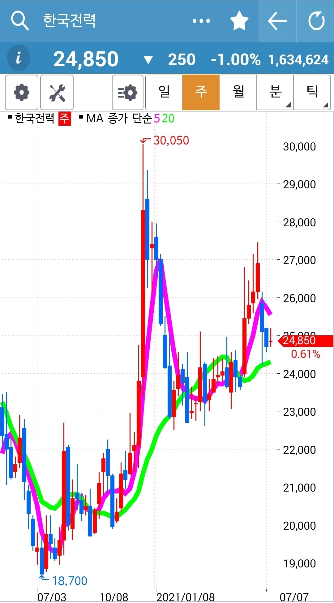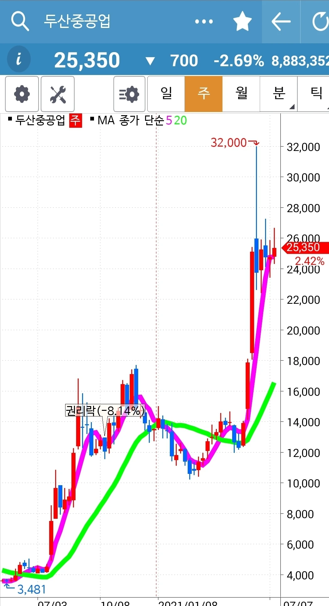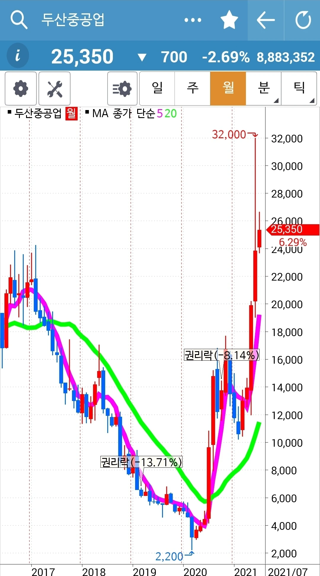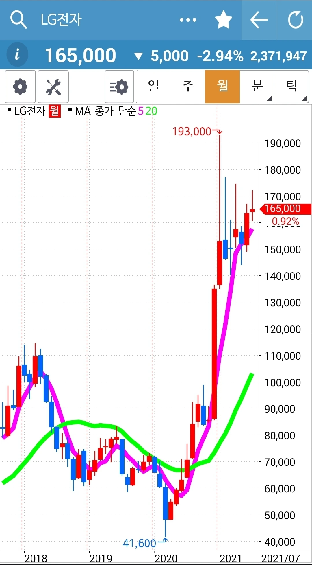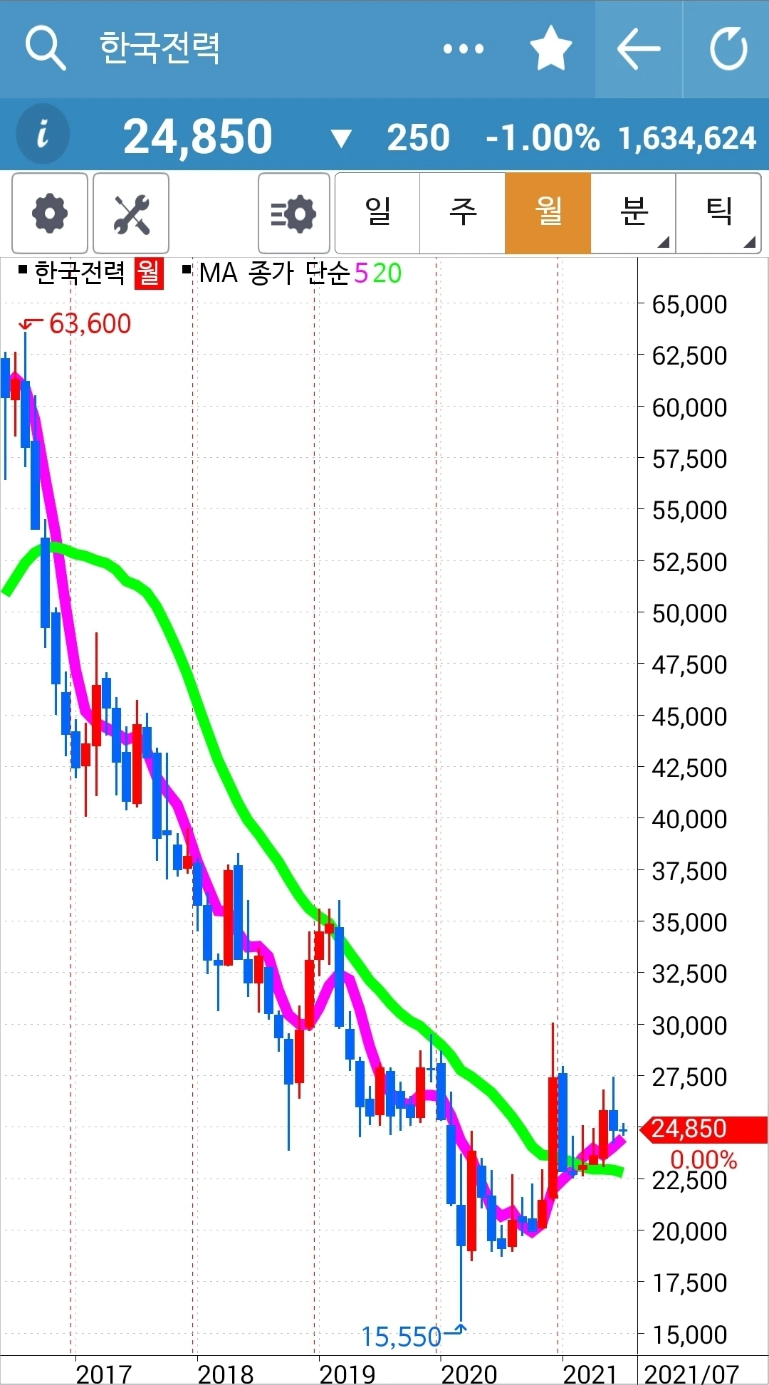 현물 주식이라고 월봉 보고 들어갔다고 5일선에 20일선 아래로 내려갔음에도 버티고 있다. 은혜에 보답하거라~ 하하.
