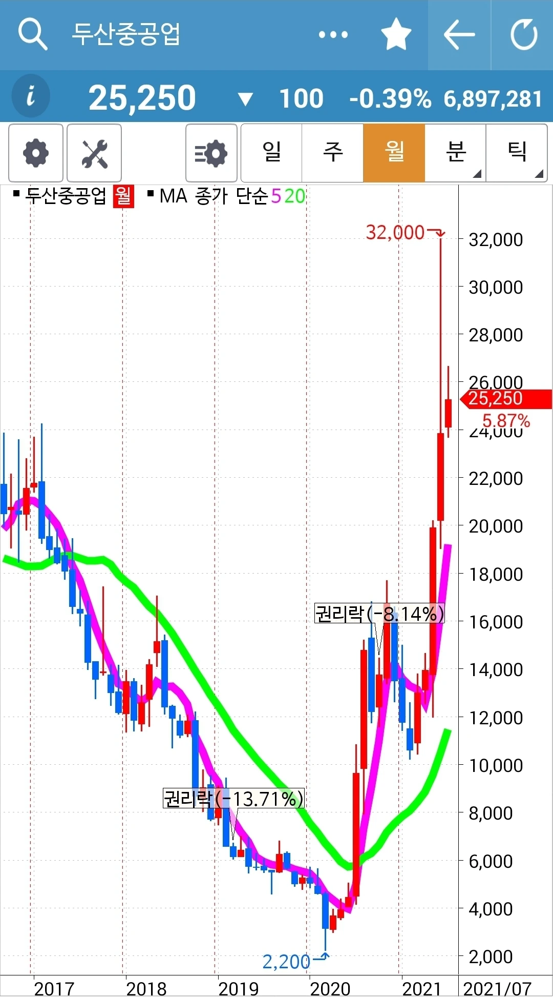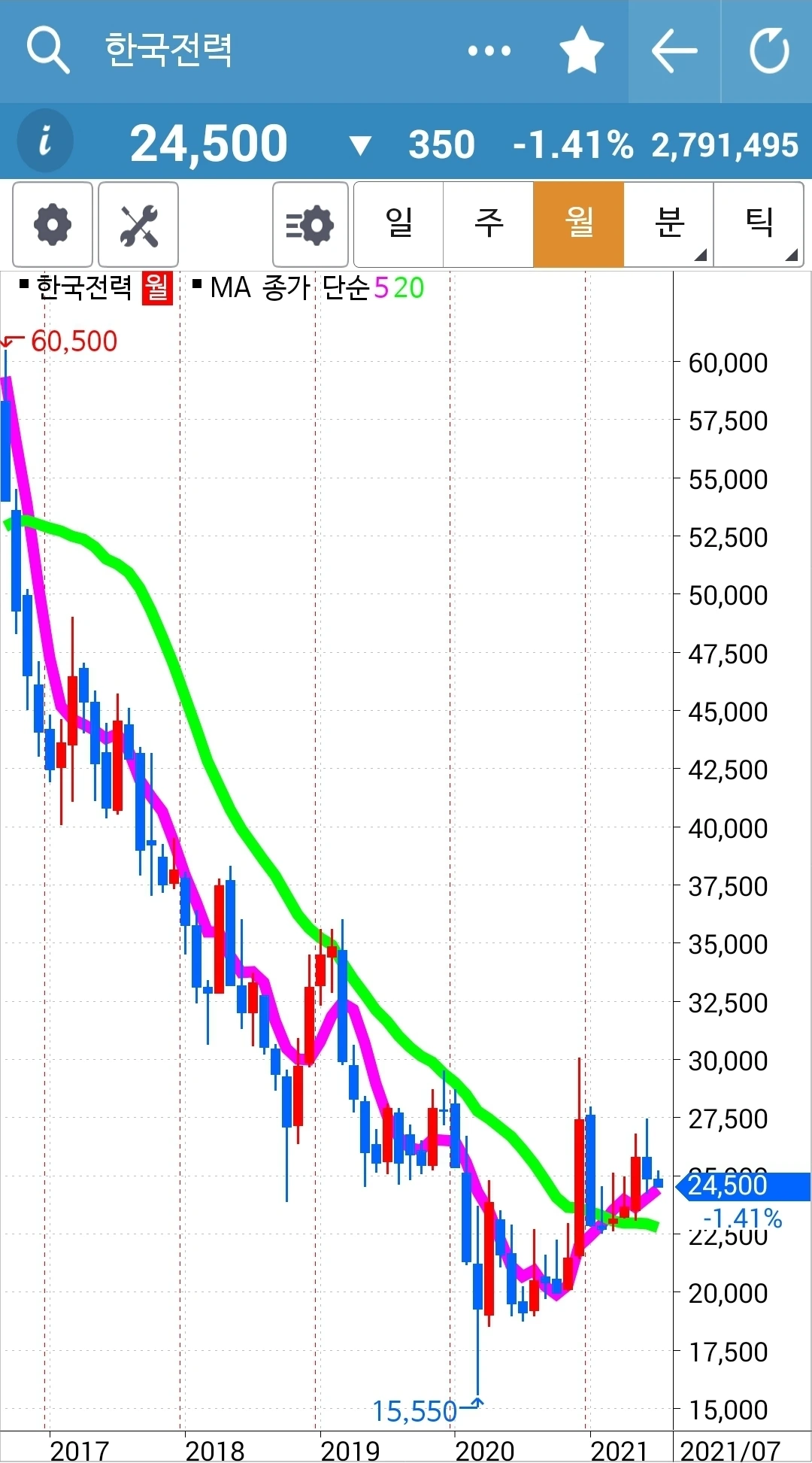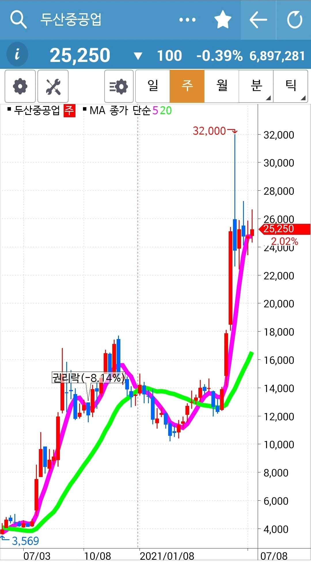 충동적으로 들어간 이 종목. 선물은 그대로 정리되는 통에 많은 손실을 보았다. 그러나 현물 주식은 기다려줄 수 있다. 일봉에서 아직 5일선이 20일선 위에 있기에 가지고 있을 이유가 충분하다. 파이팅!!!