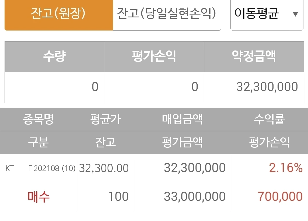 사진 2. 선물주식. 모두 탈락하고 KT만 남아있다.