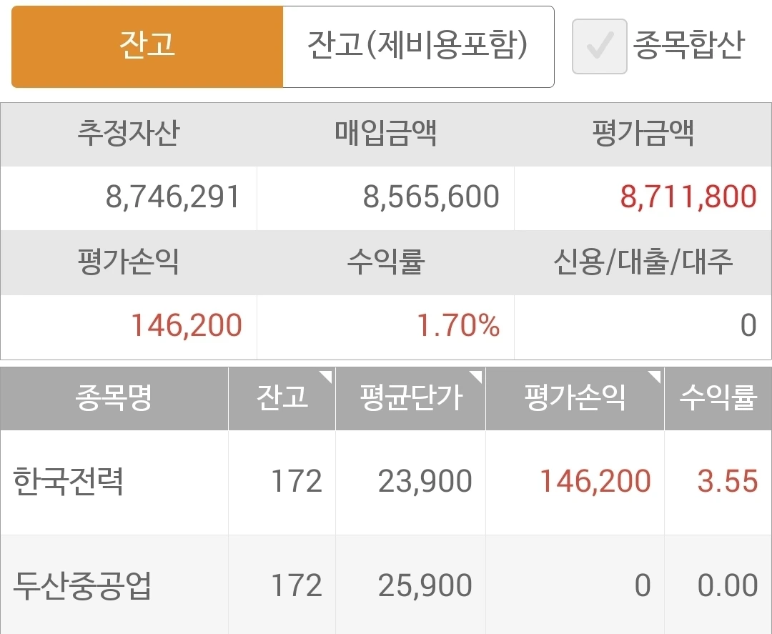 사진 1. 현물주식. 오홋. 500 투자해서 870이면 오케이~ 하하