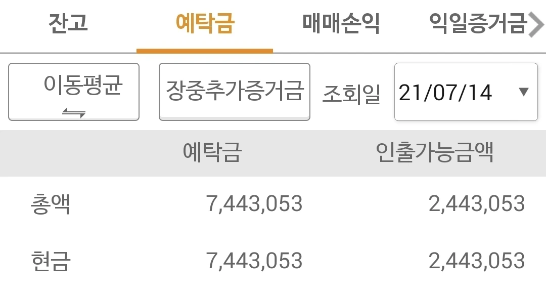 사진 3. 선물주식예탁금. 744만원. 오케이.