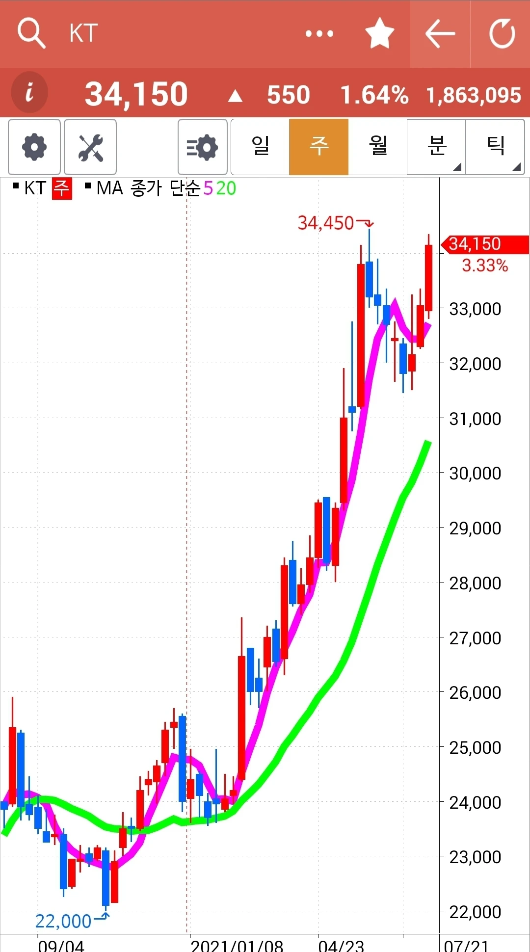 이렇게 아래서 헤매고 있는 걸 샀다. 일봉도 주봉도 데드크로스인데 샀다. 싸게 사서 배당금 챙기며 오래오래 가져가는 새 방식의 접목이다. 팔랑팔랑 팔랑귀일까 결단력이 빠른 걸까 추진력이 빠른 걸까 그 후배의 설득력이 컸던 걸까. 푸하하하 아무려면 어떠랴 앞으로의 진행을 볼지어닷. 룰은 깨지라고 있는 거고 내 주식 내 맘대로 할 수 있으니까. 파이팅!!! 하하