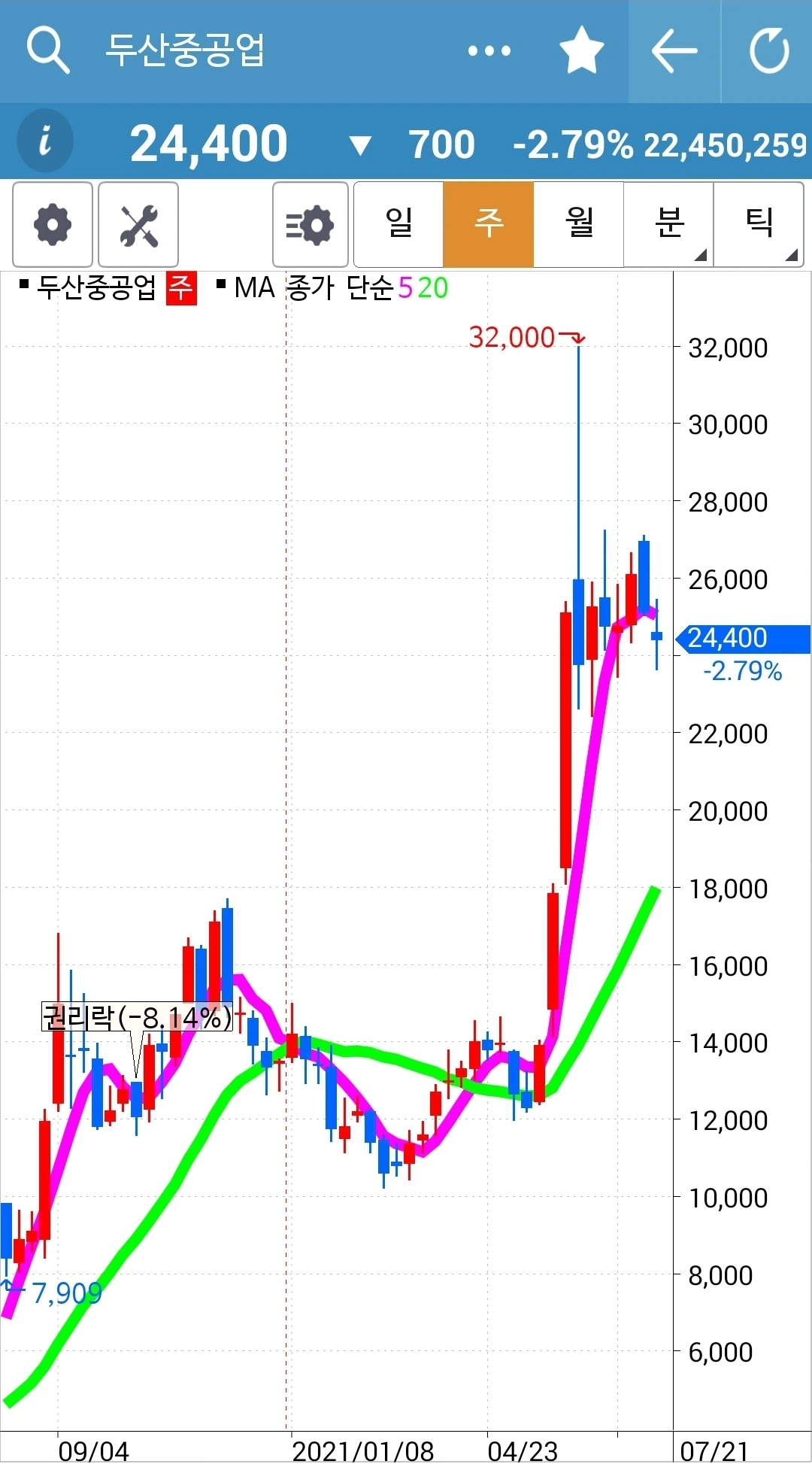 사진 2. 선물주식. 여긴 철저히 5일선과 20일선 나의 원칙 지키기를 할 것이다.