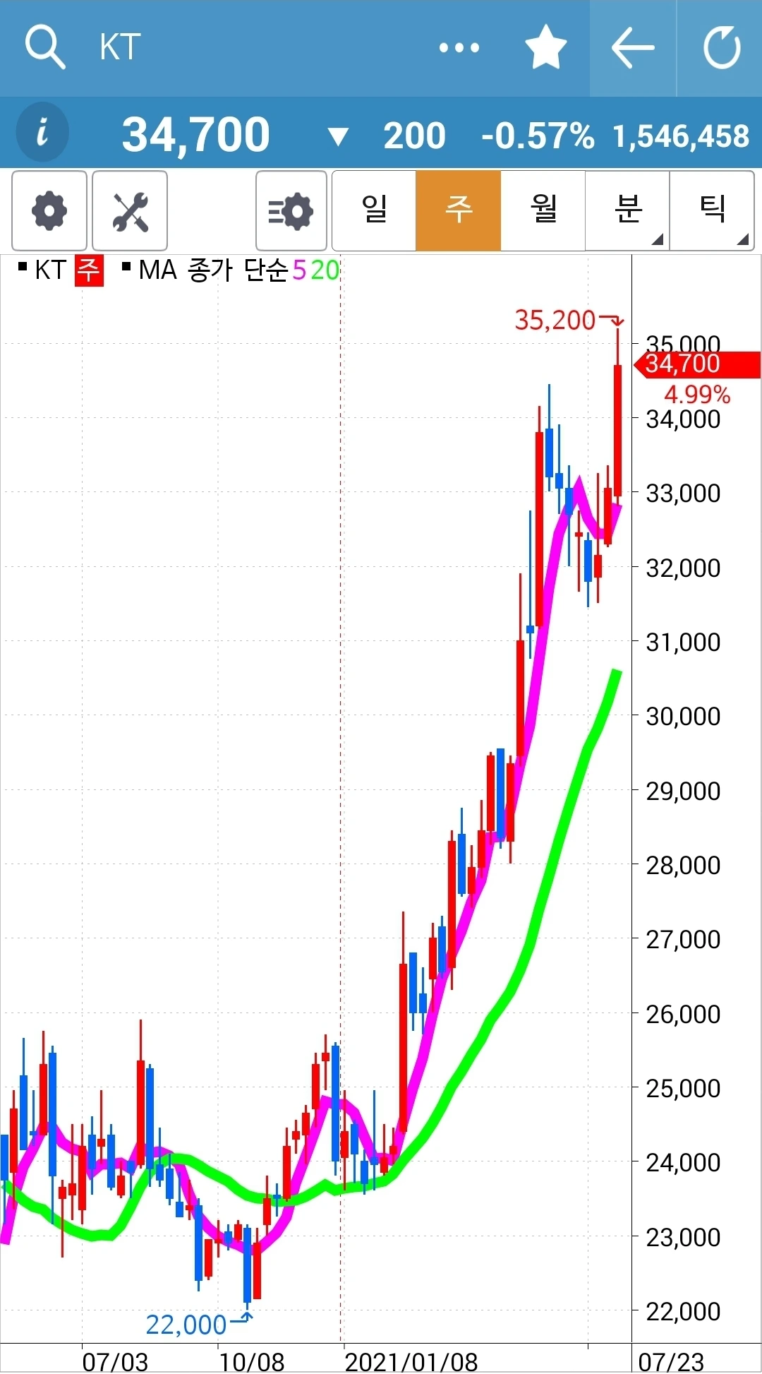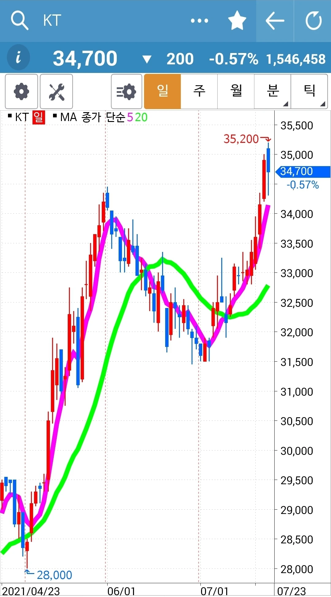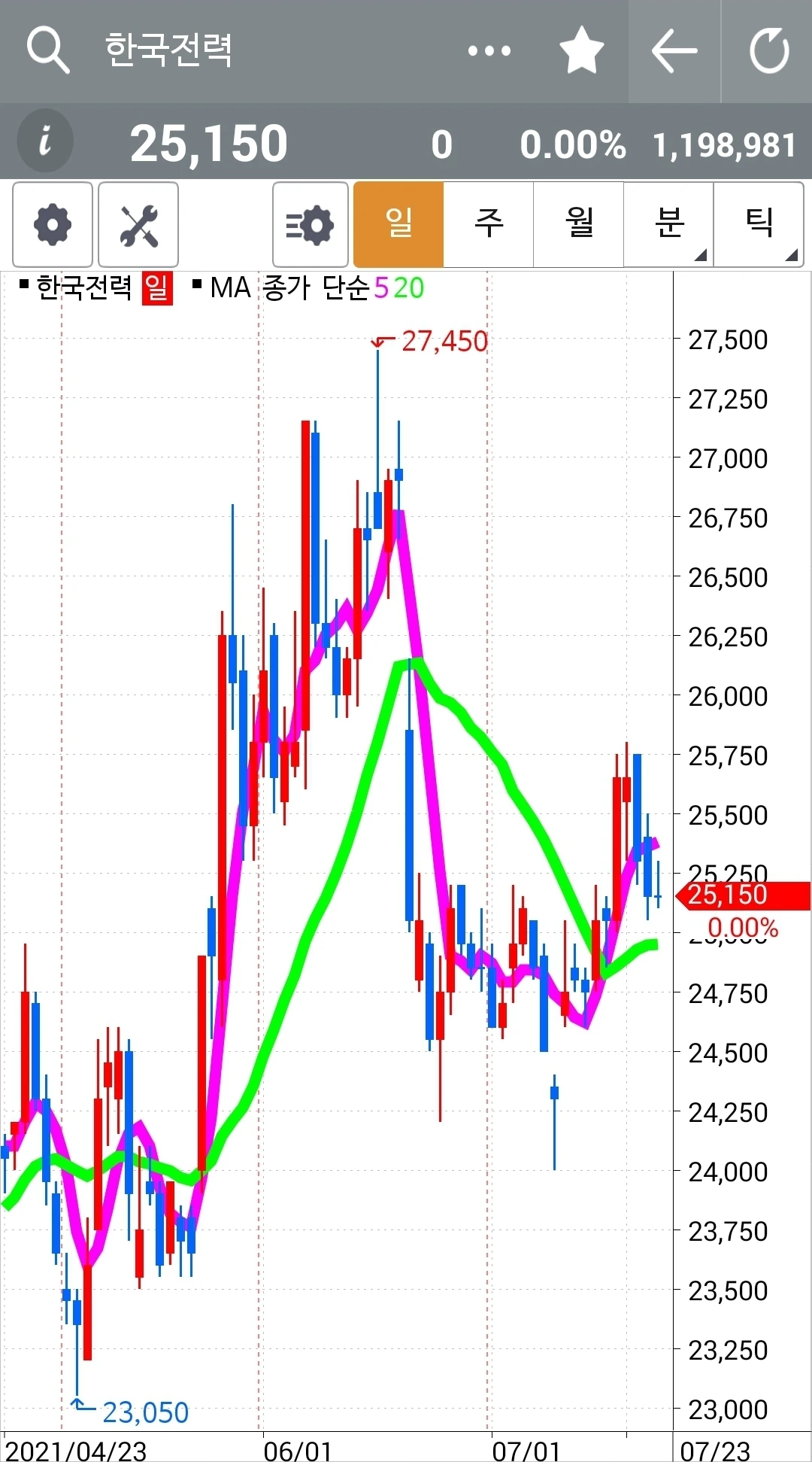 배당금을 노리며 길게 길게 가져가리라는 마음으로 현물 주식에 사넣었다. 조만간 5일 선도 20일선 위로 올라올 것 같다. 현물 주식은 그렇게 장기전으로 가리라.