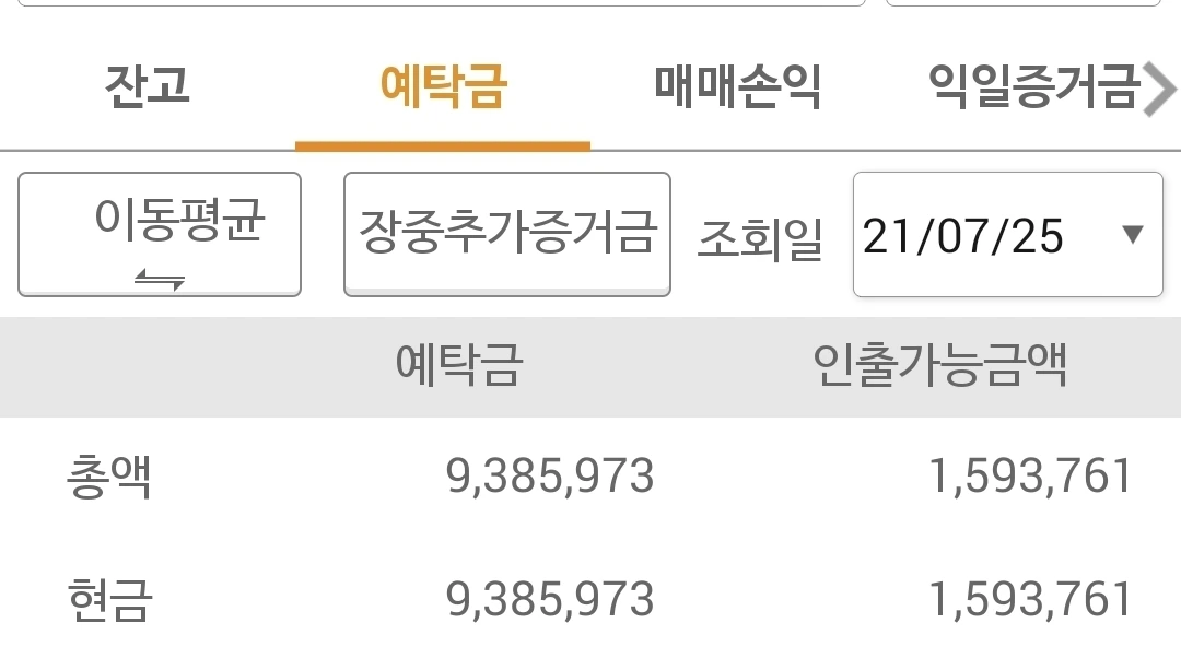 사진 3. 선물주식 예탁금. 종목을 잘 고르면 수익이 놀랄 정도로 빠르게 증가한다. 600만 원대까지 떨어졌던 게 어느새 천만 원을 코앞에 두고 있다. 파이팅!
