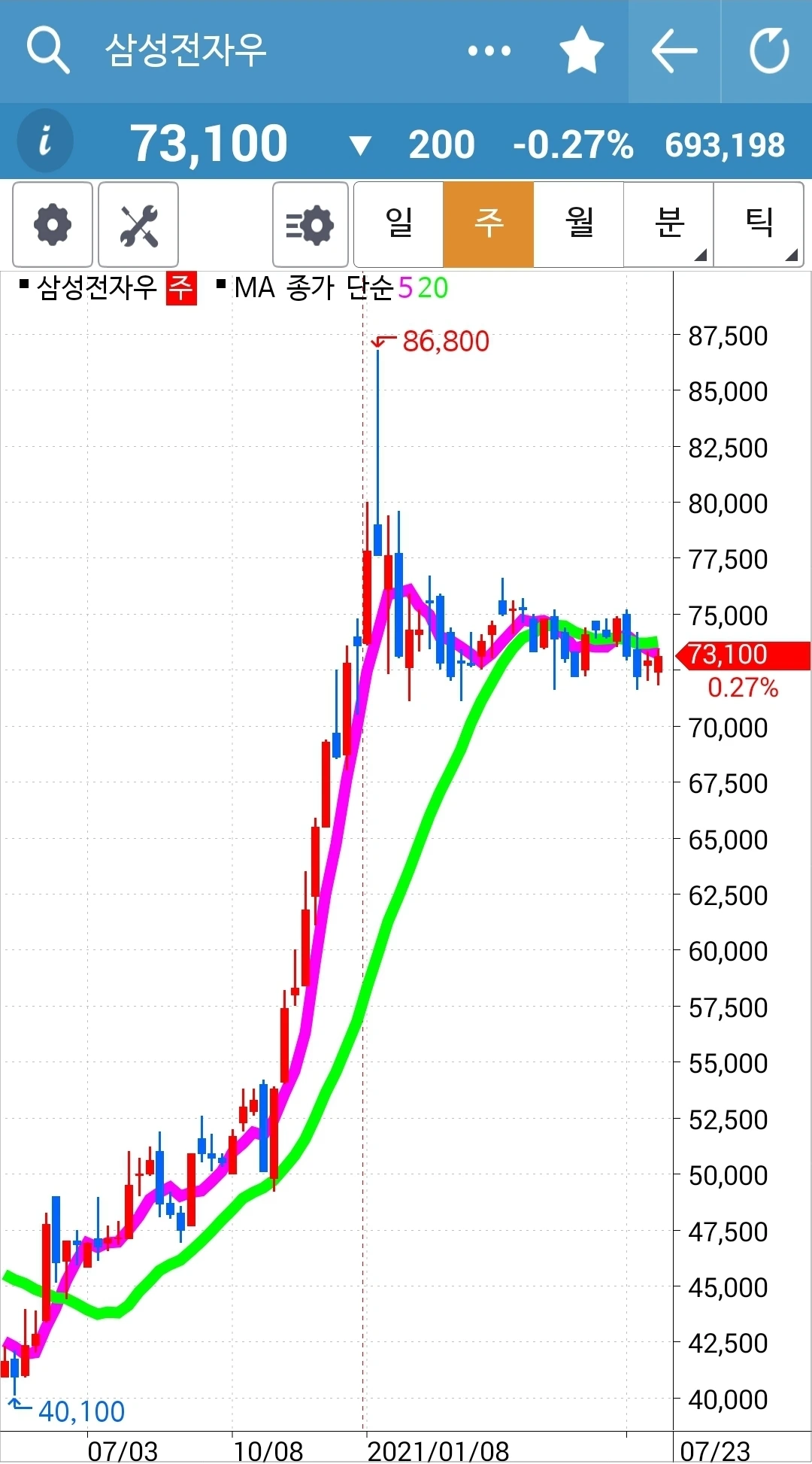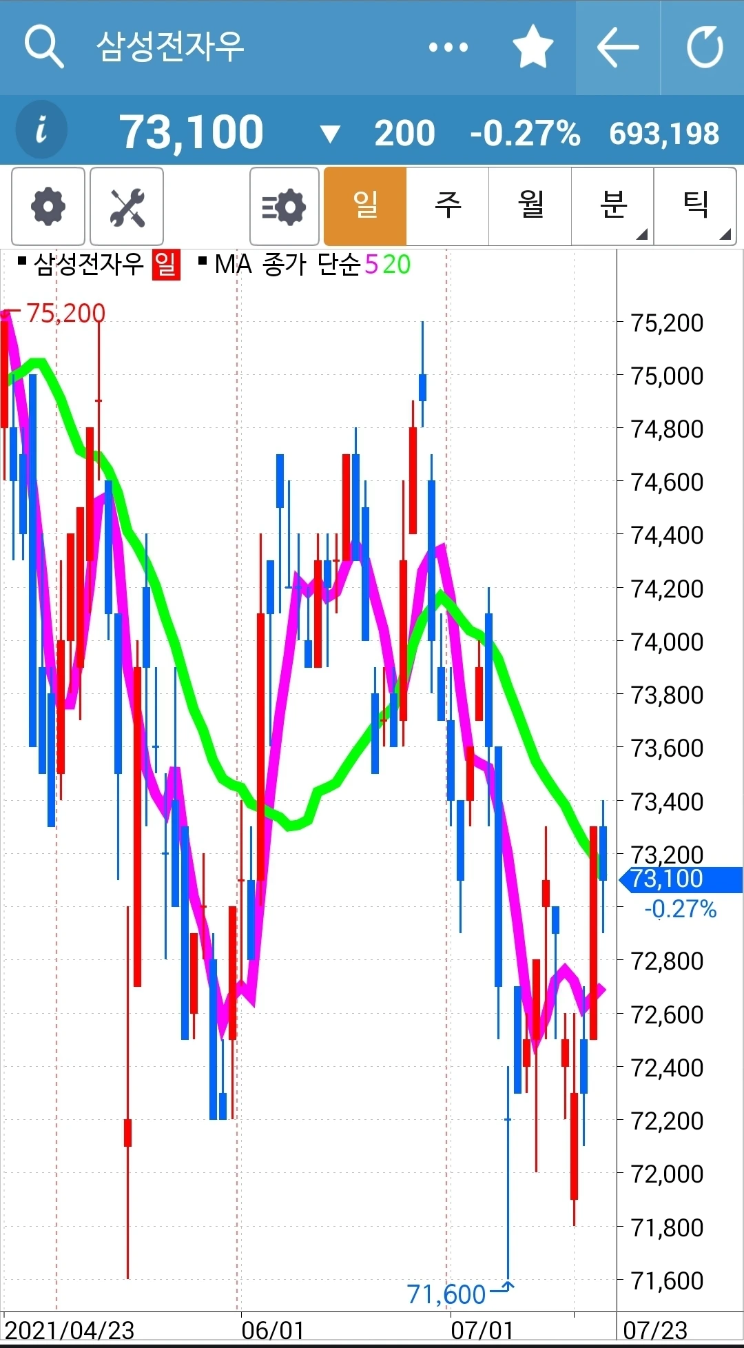 사진 1. 현물 주식. 방법을 바꾸어 이 두 개는 5일선 20일선 상관없이 오래오래 가져가리라.