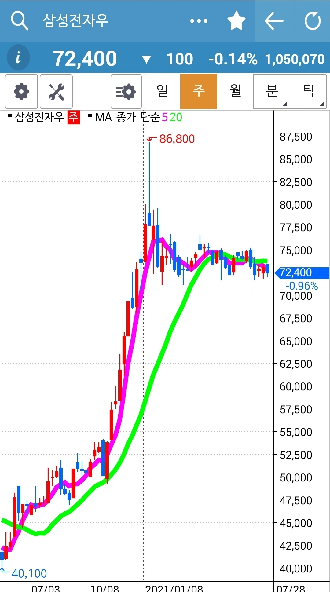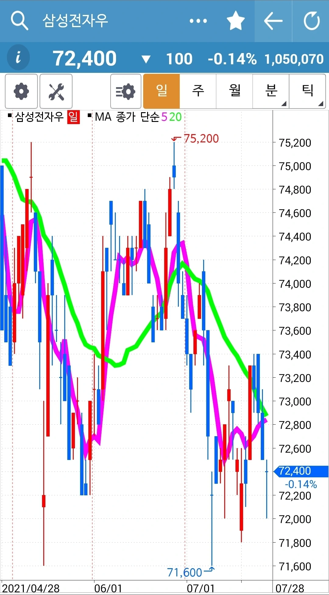 팔랑팔랑 팔랑 귀 후배 말을 듣고 장기전으로 장착했건만 오늘 삼성전자는 올랐는데 우선주는 떨어졌다. 그래도 오래오래 두고 배당금을 챙기기 위함이 목적이라면 우선주가 마땅하므로 잘 지켜보기로 한다. 5일선이 20일선 위로 어서 깡총 올라서면 좋겠다.