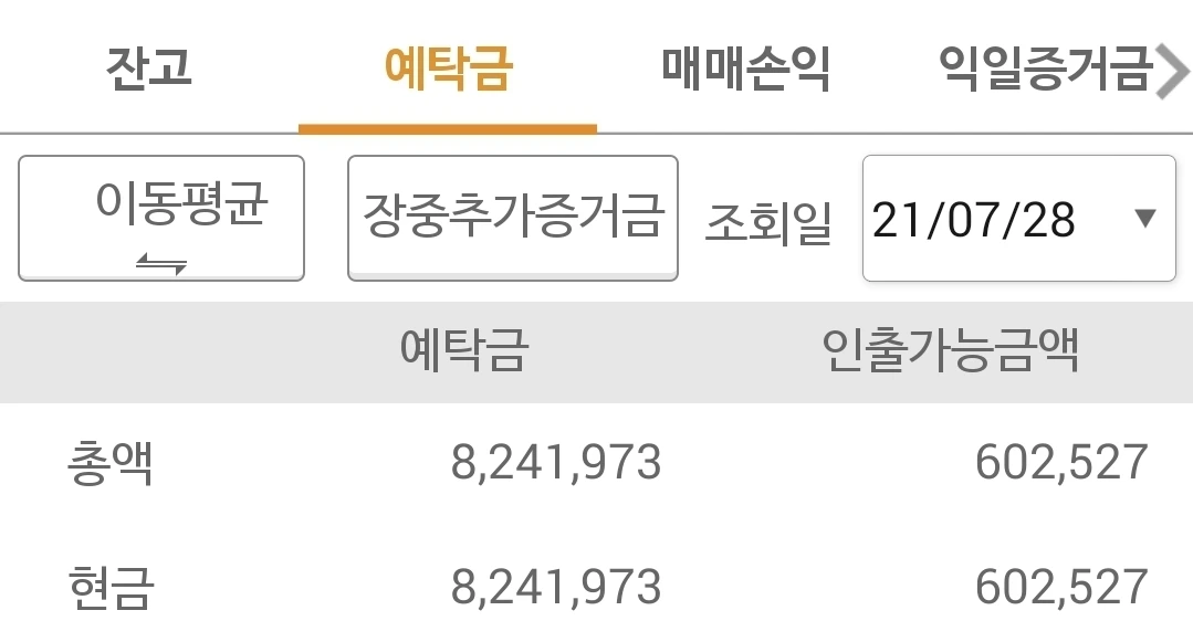사진 3. 선물 주식 예탁금. 빨리빨리 예전고점 1600만 원을 향해 달려가자. 파이팅!