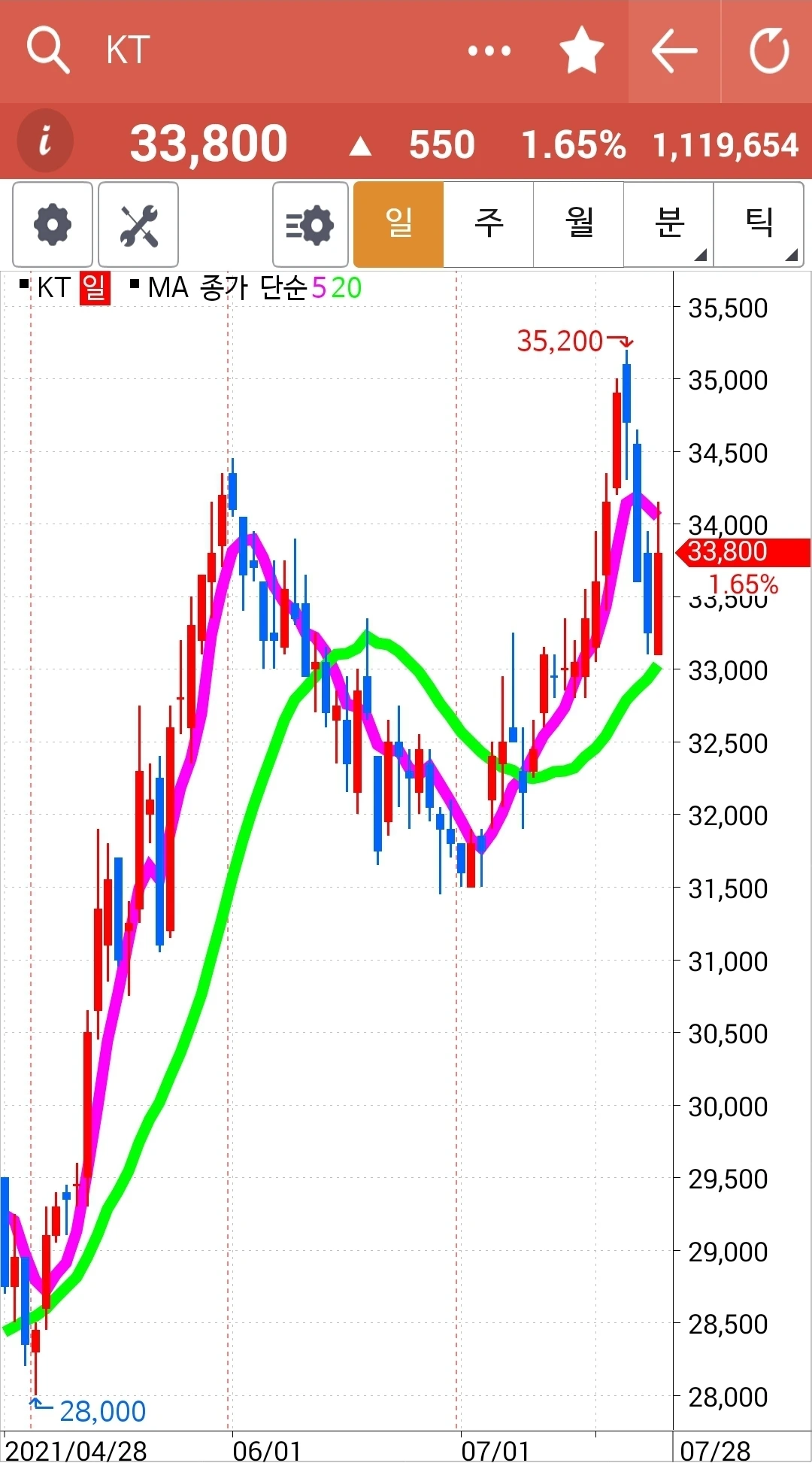 귀신같이 20일선을 땅 딛고 웅크린 몸을 발돋움하며 빵! 뛰어오른다. 얏호다 정말. 푸하하하