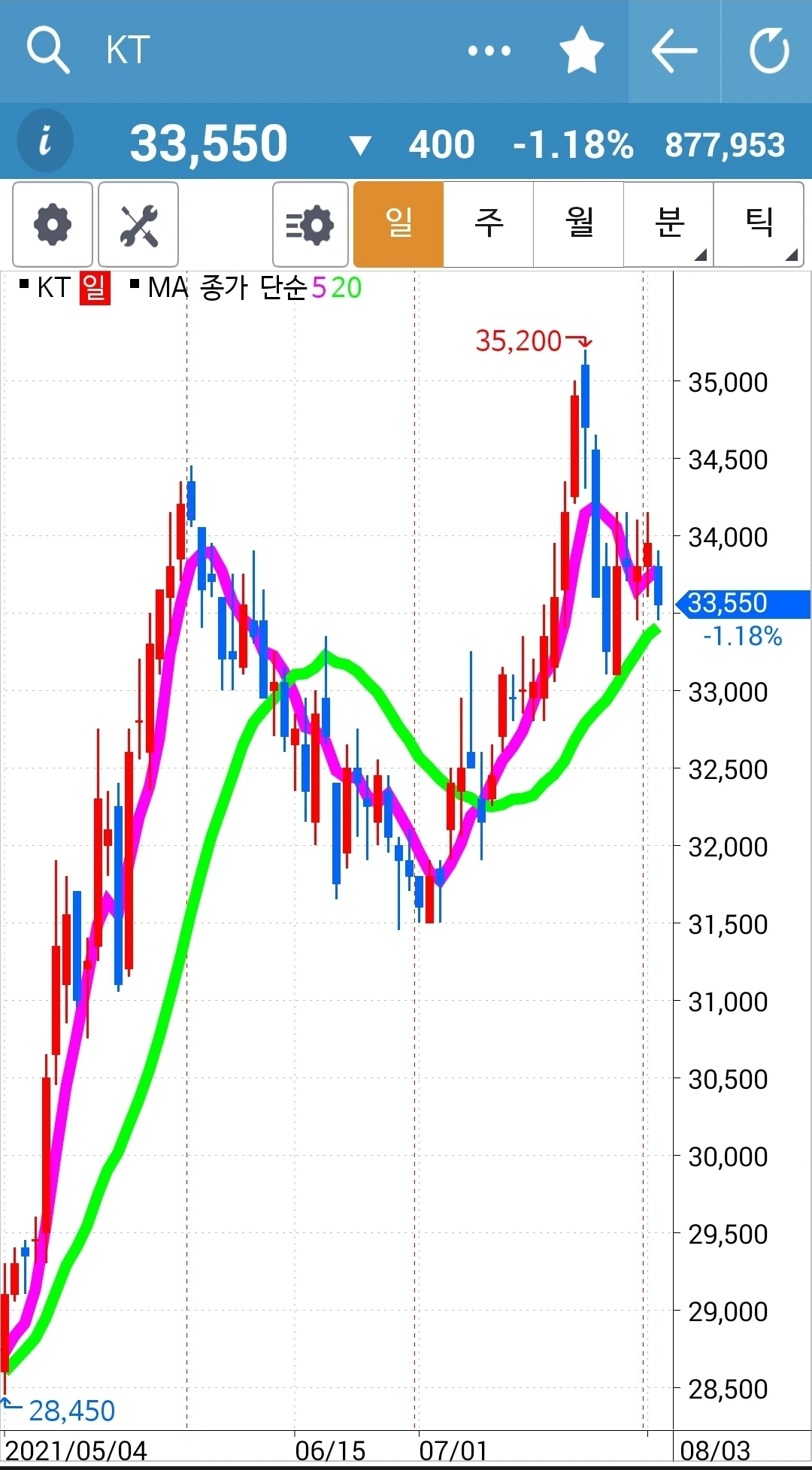 아슬아슬이다. 조만간 5일선이 20일선 뚫고 내려올 수도 있겠다. 그렇다면 선물주식이니 칼같이 탈락시켜야 한다. '난 아무것도 몰라요~ 5일선이 20일선 아래로 내려가면 매도할 뿐야요~' 요것만은 난 잘할 수 있으니까. 파이팅!!!