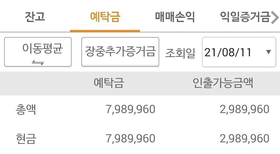 사진 3. 선물 주식 예탁금. 하이고~ 700만 원대로 떨어졌다. 그야말로 쪽박이다. 에고.