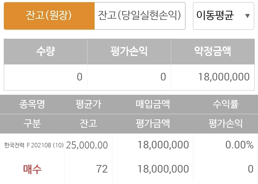 사진 2. 선물 주식. 만기일이 코앞이라 새 종목을 골라 넣지 않았다.