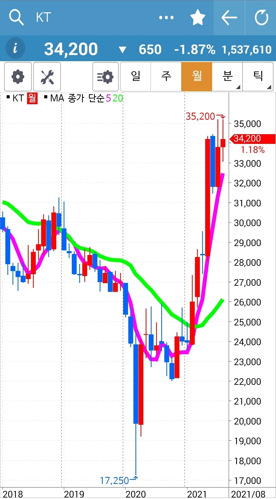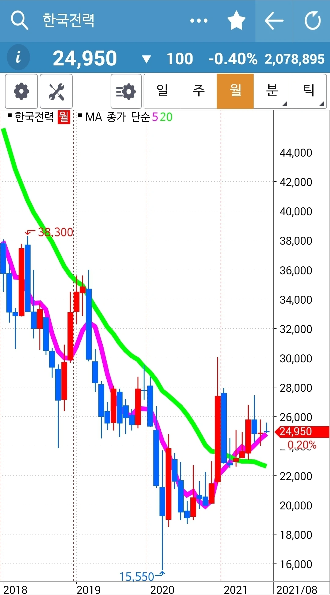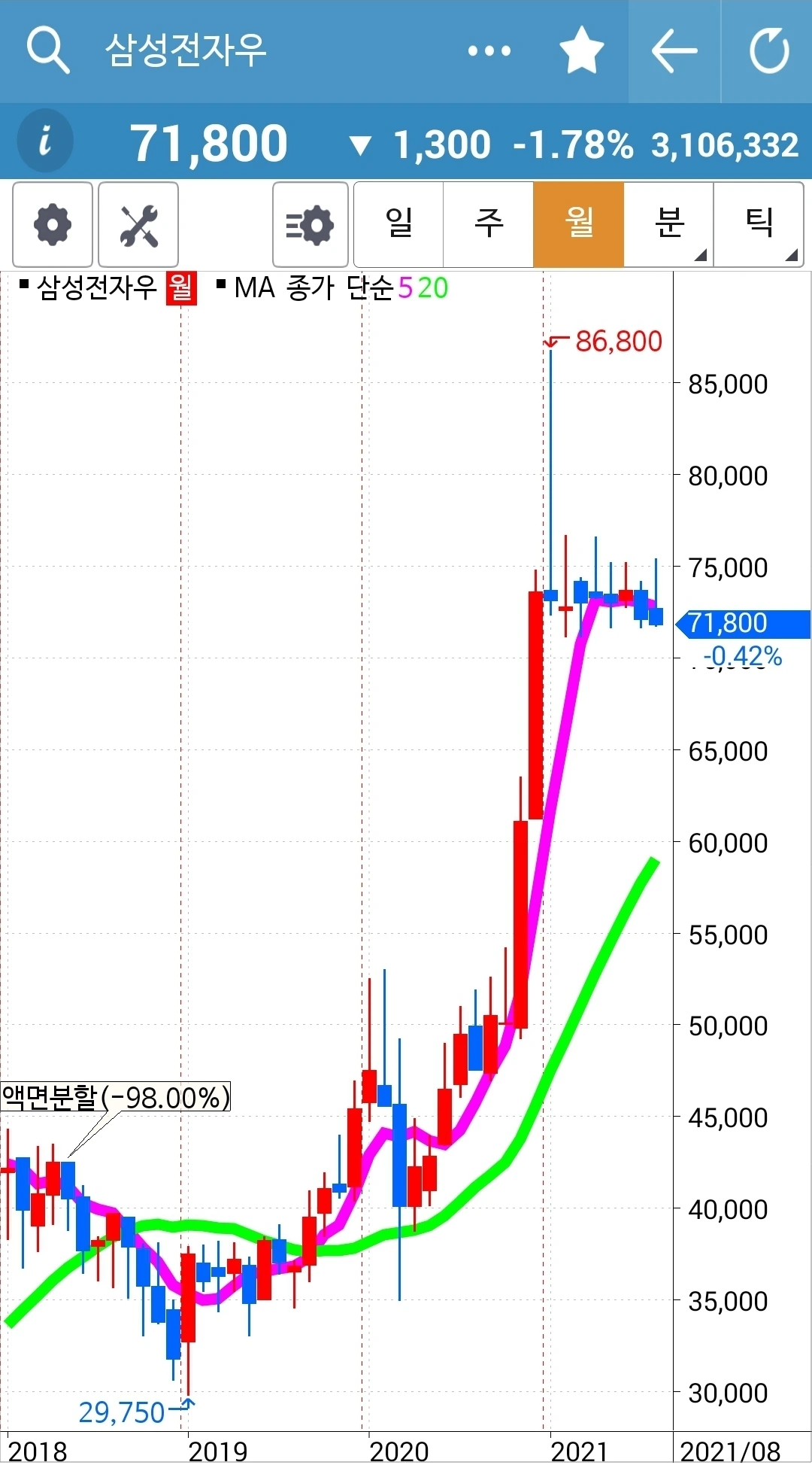 현물 주식은 월봉이 무너지지 않는 한 가지고 간다. 느긋하게.