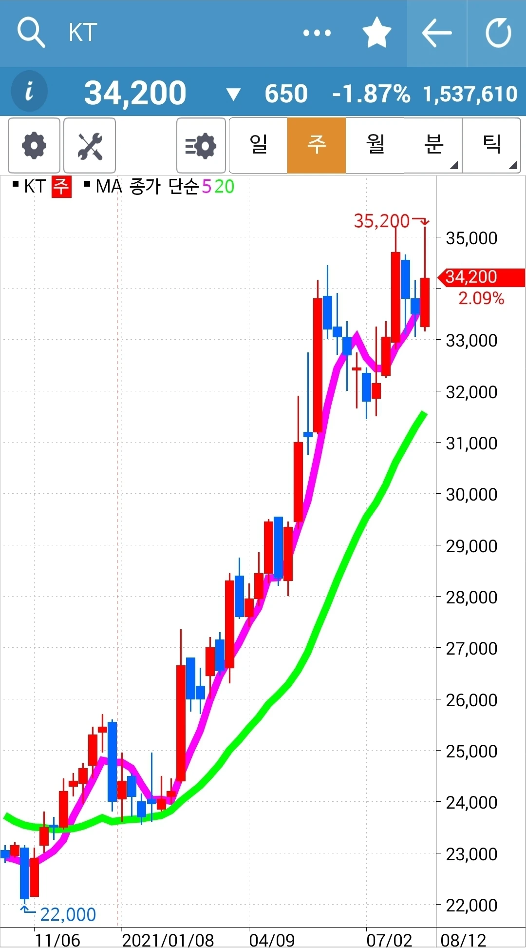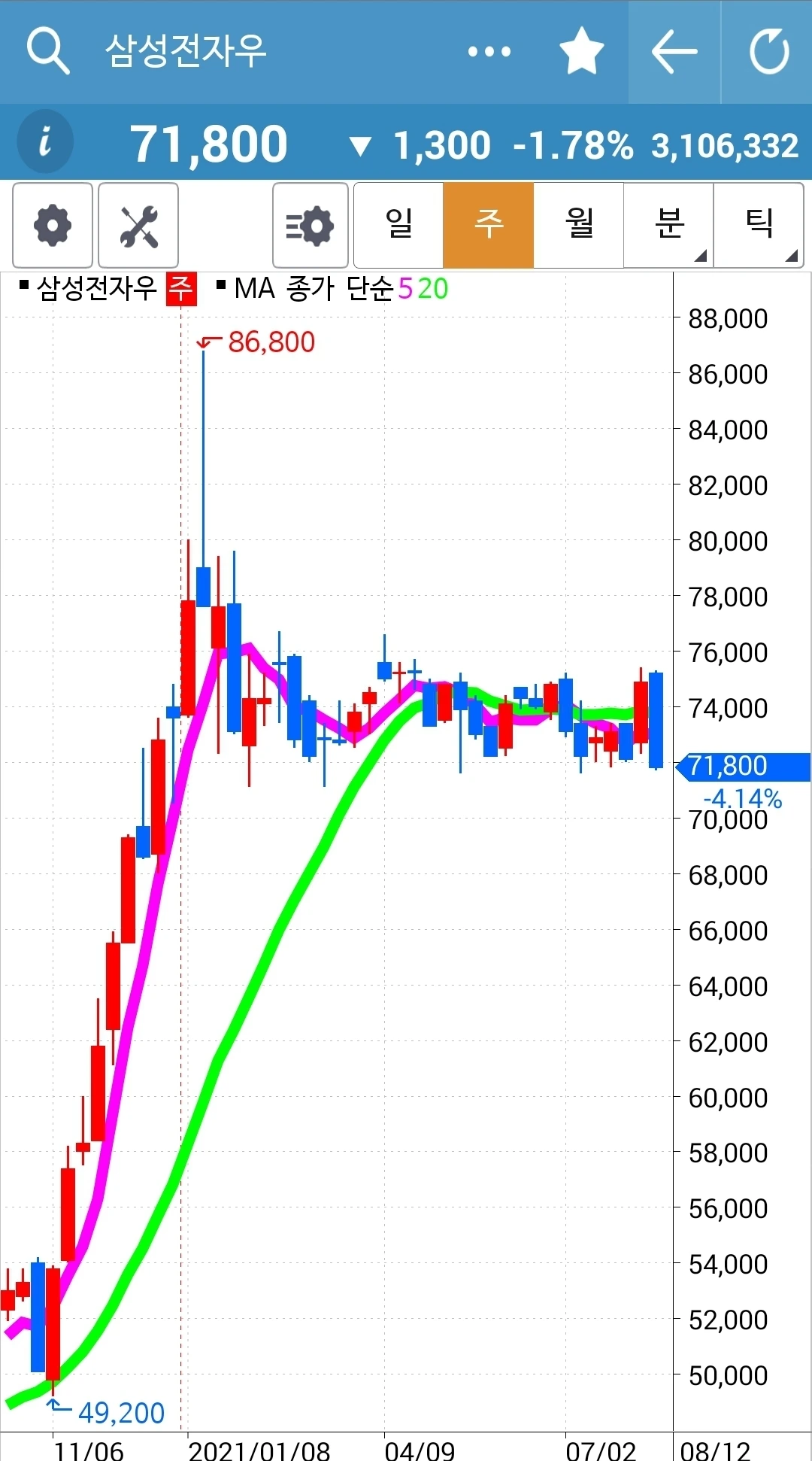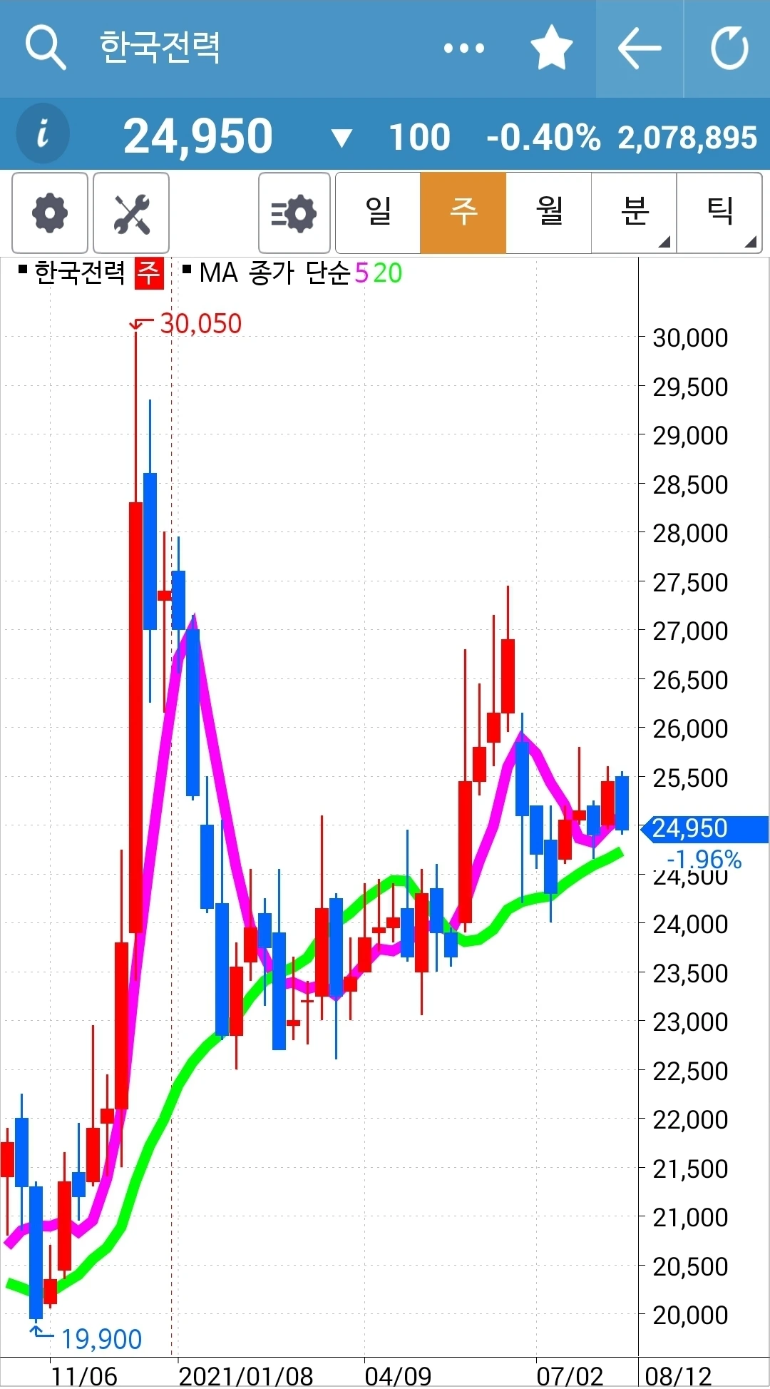 현물 주식은 월봉이 무너지지 않는 한 가지고 간다. 느긋하게.