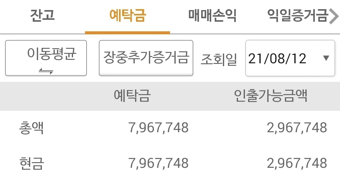 사진 3. 선물 주식 예탁금. 850만 원 투자 원금을 향하여 달려라~ 하핫.