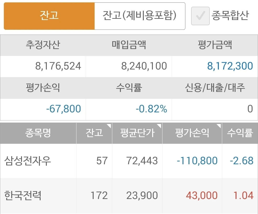 사진 1. 현물 주식. 다시 800만 원대로 올라왔으니 500만 원 투자에 오케이.