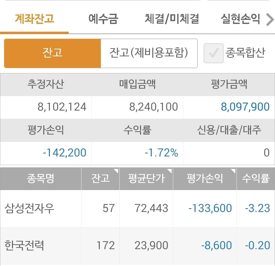 사진 1. 현물 주식. 500만 원 투자원금에 지금 810만 원. 히히 수익만 생각한다.