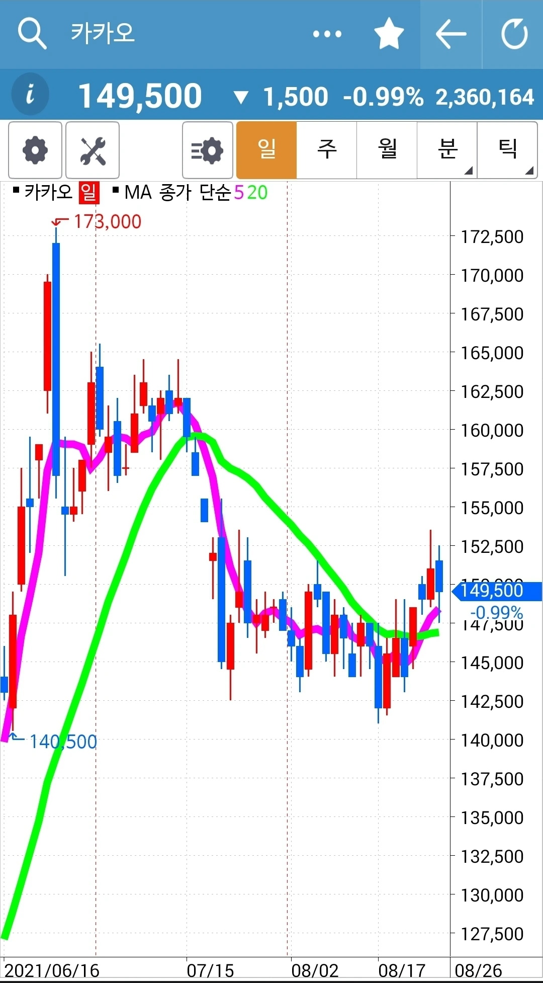그래. 기회가 되면 장기전에서 탈출이다. 장기전 운운하며 매일 그래프 속 하락을 보는 건 고통이다. 그냥 내 식으로 하자. 나의 원칙에 맞는 종목으로 바꿔 탈 기회를 노리자꾸나. 급할 건 없다. 룰루랄라 즐기며 하자고요. 파이팅!!!