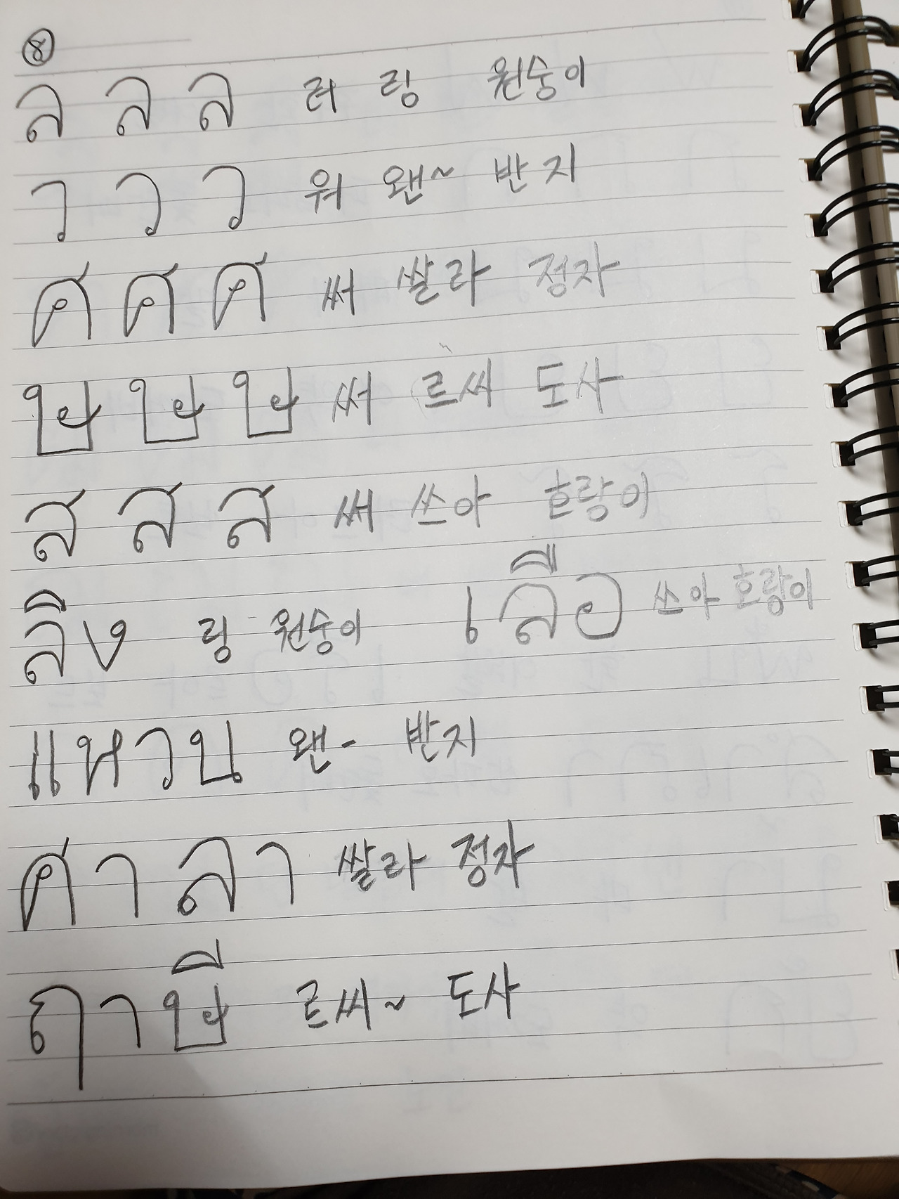 러링 워웬 써살라 써르씨 써쓰아 우리나라 가나다라 외우듯 이렇게 자꾸 외워봐야겠다. 뜻까지 익히면 금상첨화이므로 옆에 써놓고 익힐 수 있으면 계속 익히리라. 오예!!! 참 잘하고 있어!!! 파이팅!!!