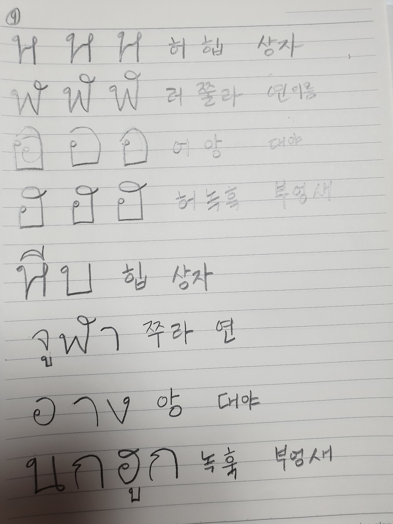 오호호호 허녹훅으로 자음 44개가 모두 끝난다. 다시 한번 외워볼까?