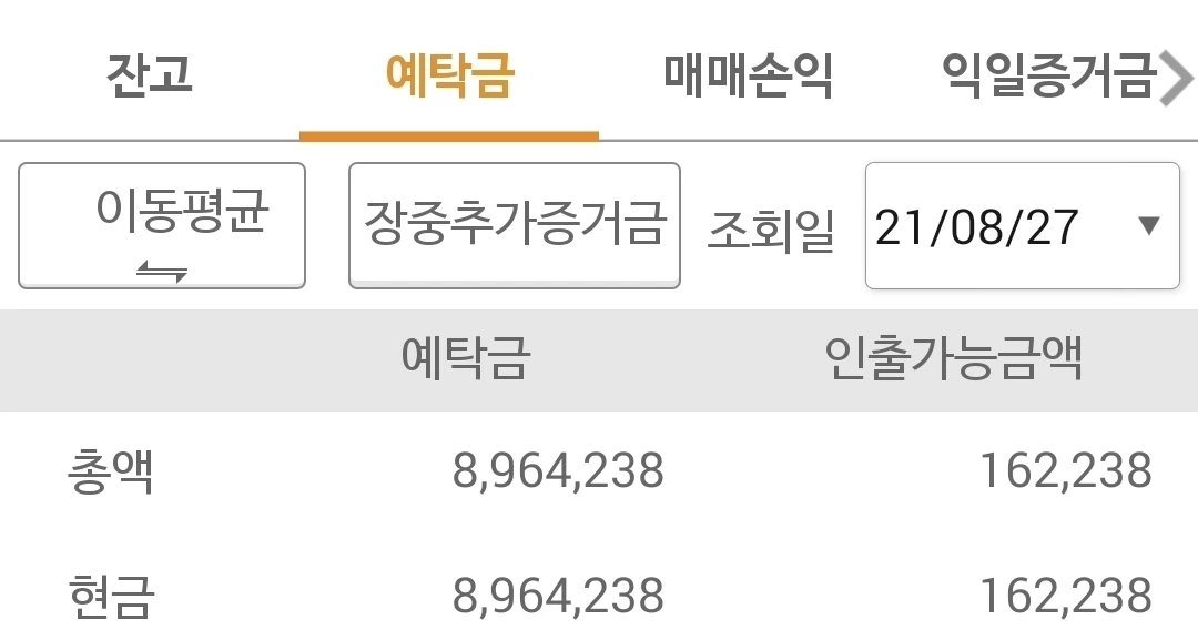 사진 3. 선물 주식 예탁금. 900만 원대가 코앞이다. 호홋. 잘하고있쓰~