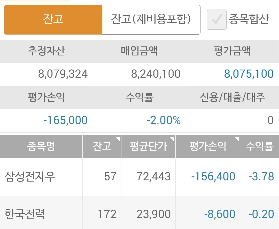 사진 1. 현물 주식. 800만 원대를 근근이 지키고 있다. 그래도 500만 원 투자해서 이게 어디야. 푸하하하