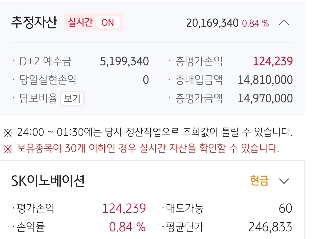 사진 2. 카카오 뱅크로 개설한 증권사에 이천만 원 입금된 장면