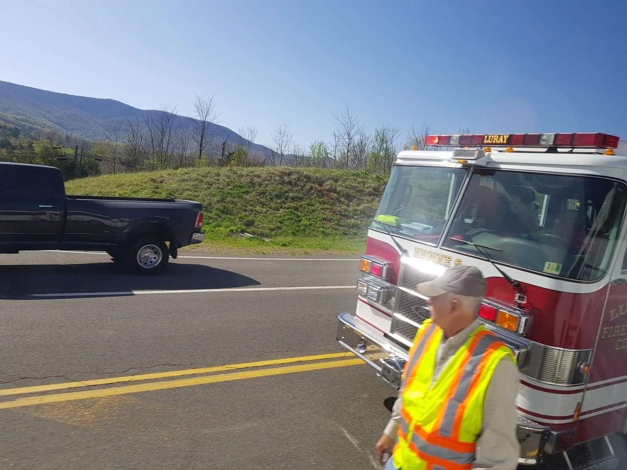 그런데 그 한적한 시골을 지나는데 앗. 버스가 움직이질 않는다. 이 한적한 마을에 저 멀리 큰 교통사고가 일어난 것이다.