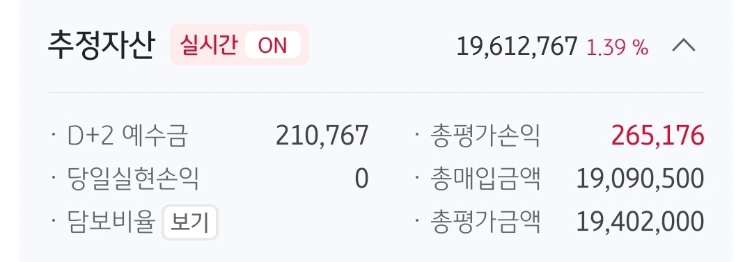 사진 1. 추정자산 1961만 원. 오예! 140만 원만 더 벌면 된다. 정산을 해야 하는 매달, 즉 한 달이 되기까지 영업일은 한 이 주 정도 남아있다. 파이팅!